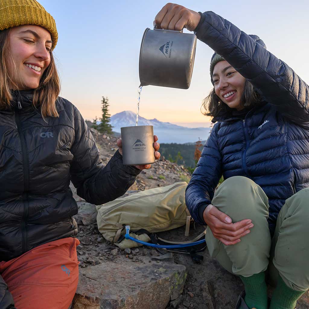 Is it a pot? Yes. Is it a bowl? Sure. Is it a mug? It is if you’re thirsty. The MSR Titan Kettle has many uses for almost any adventure or expedition. In fact, it can be just about anything you want it to be in terms of cooking and eating meals on the trail, from a kettle for boiling water, to a pot for cooking up pasta and even a bowl for eating from – which saves on both the washing up and the amount you need to carry. Double win. Made from ultralight titanium, it now features a new and improved drip-free spout for easy pouring, and a redesigned, tight-fitting lid for an efficient boil time. Available in two sizes, suitable for one or two campers. It’s also designed to nest neatly with the Titan Cup, Pocket Rocket Stove and MSR’s IsoPro fuel canisters (all sold separately), so it’s easy to build a space-efficient camp cookset.