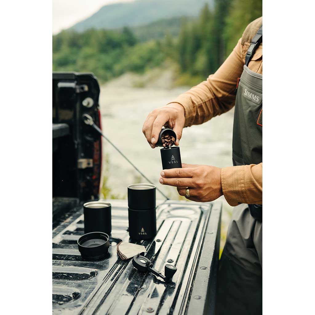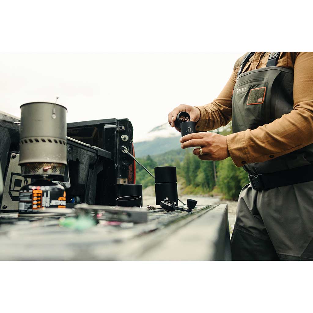 • VSSL was born in the backwoods of Saskatchewan, Canada, where founder Todd Weimer spent his youth rigging up DIY survival kits in hollowed-out PVC pipes. That spirit of resourceful adventure never left him — but these days, VSSL is less about emergency gear and more about elevating everyday rituals in the wild. The new mission? To brew better coffee outdoors. And frankly, VSSL is nailing it.