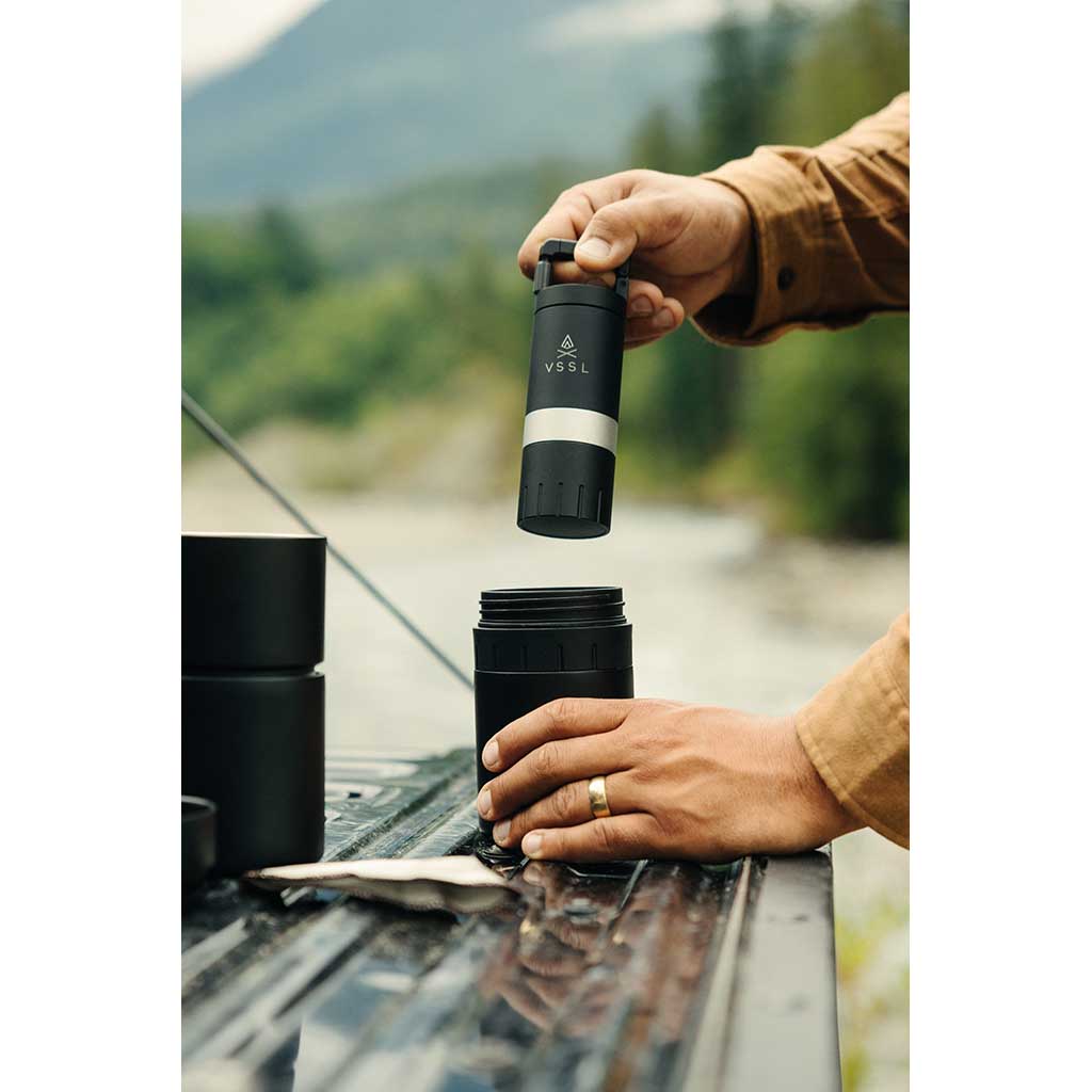 • VSSL was born in the backwoods of Saskatchewan, Canada, where founder Todd Weimer spent his youth rigging up DIY survival kits in hollowed-out PVC pipes. That spirit of resourceful adventure never left him — but these days, VSSL is less about emergency gear and more about elevating everyday rituals in the wild. The new mission? To brew better coffee outdoors. And frankly, VSSL is nailing it.