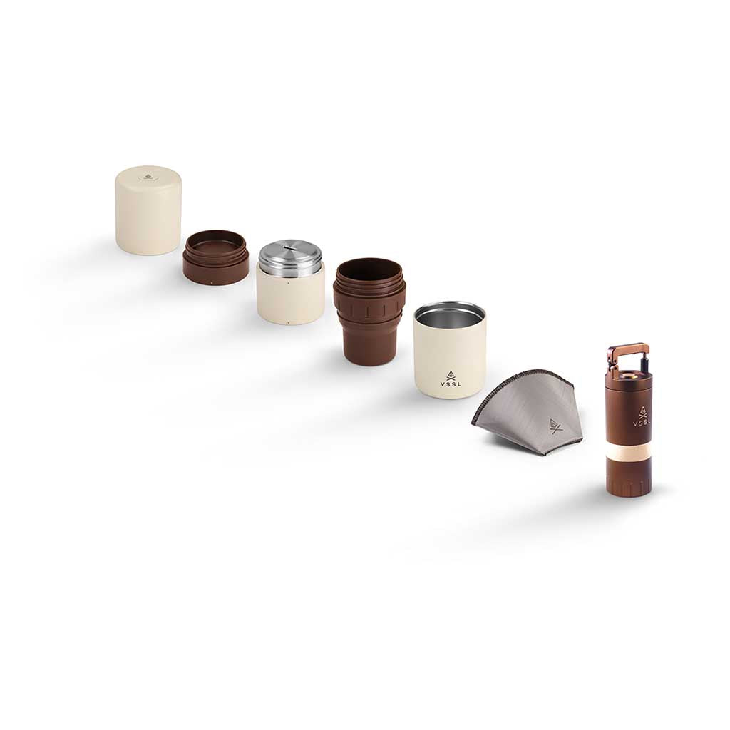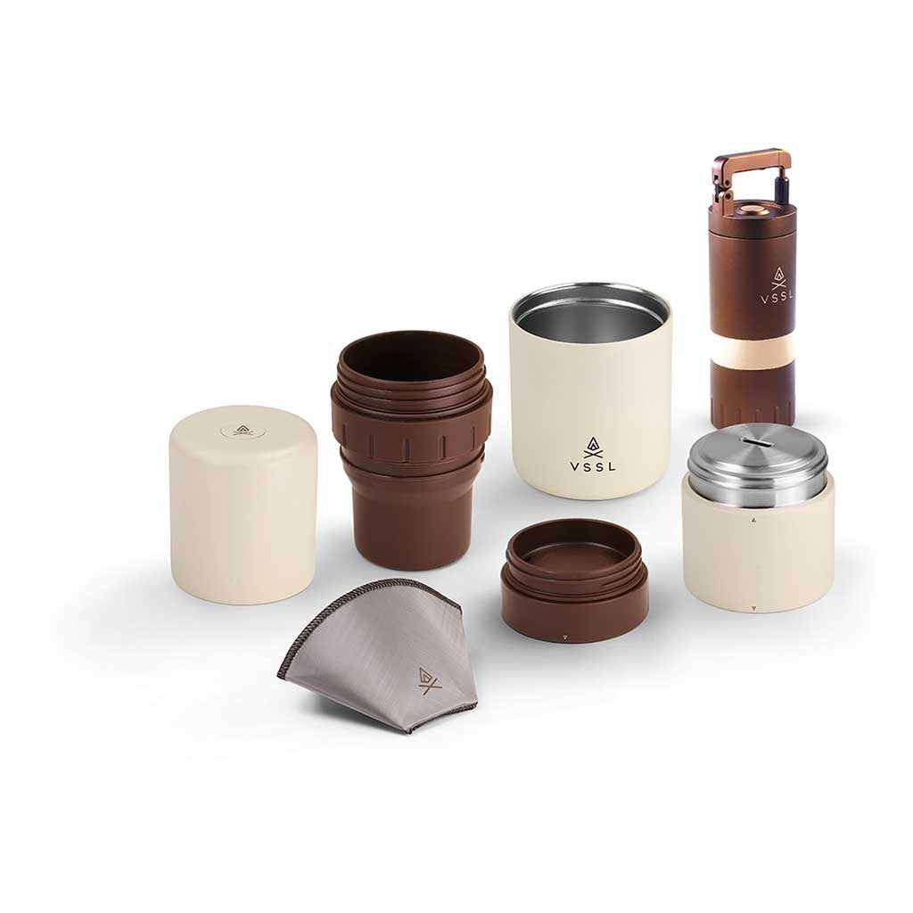 • VSSL was born in the backwoods of Saskatchewan, Canada, where founder Todd Weimer spent his youth rigging up DIY survival kits in hollowed-out PVC pipes. That spirit of resourceful adventure never left him — but these days, VSSL is less about emergency gear and more about elevating everyday rituals in the wild. The new mission? To brew better coffee outdoors. And frankly, VSSL is nailing it.