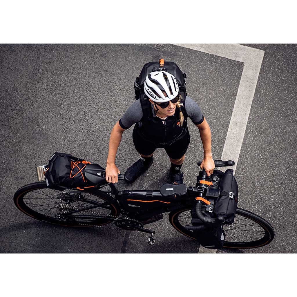 • Fully waterproof bikepacking accessory pack with quick access roll-top closure