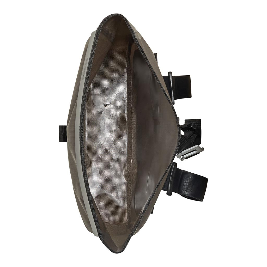 If you’re planning a big day on the bike, you’ll want to keep those small but important extras close at hand, from snacks and energy gels to your smartphone. And while road cyclists can stick that stuff in the pockets of a jersey, bikepackers and tourers tend to want more comfortable and convenient storage options. The solution is Ortlieb’s awesome Accessory Pack. This handy volume expander for your Handlebar Pack keeps your essentials secure and accessible at all times, whilst still guaranteeing full protection from the elements. Fitted with sturdy metal hooks, it can be securely attached to the four lashing points on the Ortlieb Handlebar Pack. It can also be used as standalone storage, attaching directly to your bike frame via pre-mounted Velcro straps. You can even use the carrying strap to transform it into a shoulder or hip bag.