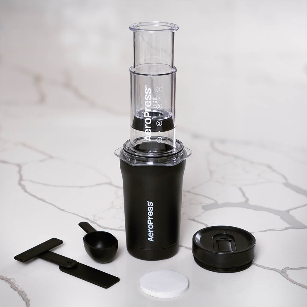 • Modified AeroPress Clear brewing chamber fits perfectly with travel tumbler