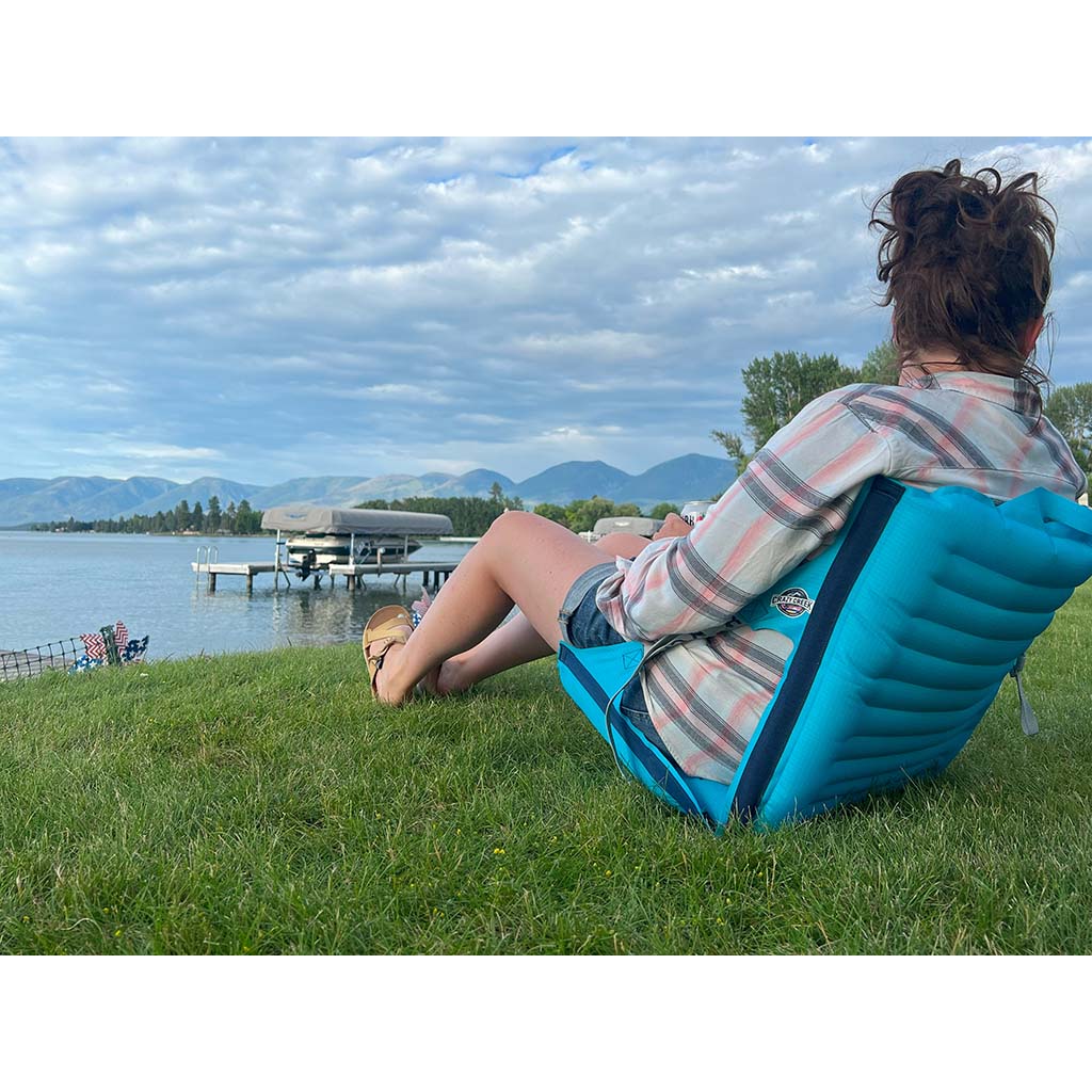 Don’t sacrifice comfort, even if you’re travelling light. The Aircliner utilises air cells in the chair to provide an unbeatable level of seated comfort in the outdoors. In just 5 breaths the Aircliner goes from packed to stacked to give you the ideal perch to pop your behind. Made from recycled Ripstop Nylon, the Aircliner is ideal for the adventurer who prioritises lightweight packability and comfort. With all air exhausted, the Aircliner rolls up to a ludicrous 6.8 cm diameter. Creature comforts and lightweight have never been so compatible.