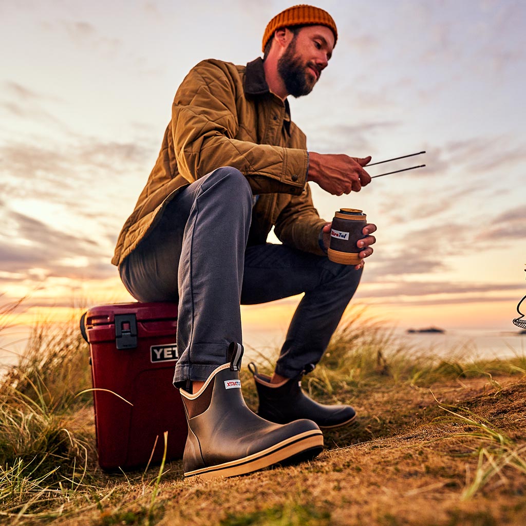 In Alaska, the utility boot of choice for everyday wear is the deck boot – a lightweight, ankle-height (6-inch) version of Xtratuf’s commercial-grade 12- or 15-inch height Legacy boots. With timeless styling for a vintage look, they are handcrafted from natural rubber, with practical pull tabs for easy on-off. They share the same high traction chevron outsole as the standard Legacy boots for non-slip performance and practicality, even on the slipperiest of surfaces. They’re the ideal choice for any adventure on or near the water.