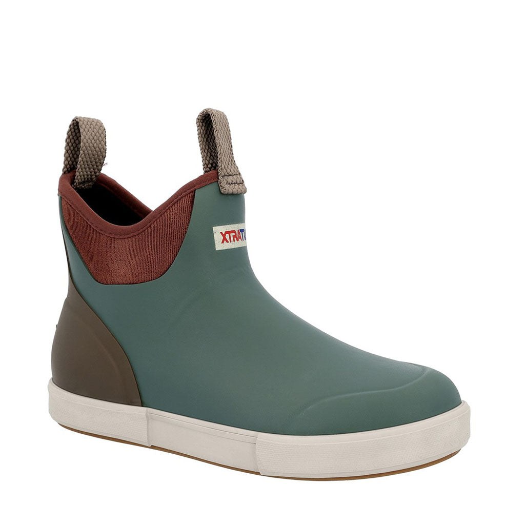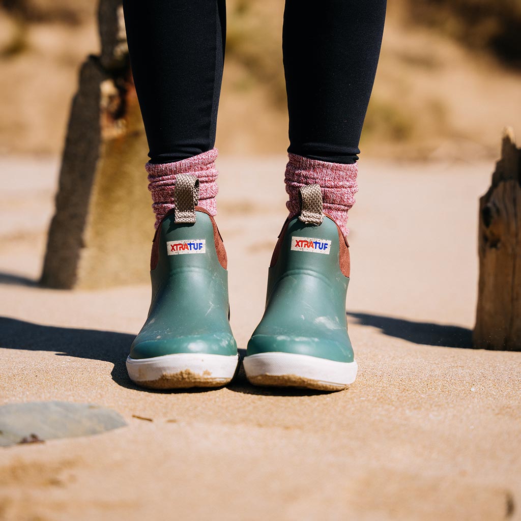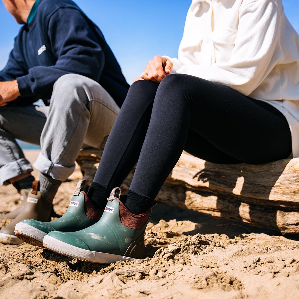 In Alaska, the utility boot of choice for everyday wear is the deck boot – a lightweight, ankle-height (6-inch) version of Xtratuf’s commercial-grade 12- or 15-inch height Legacy boots. With timeless styling for a vintage look, they are handcrafted from natural rubber, with practical pull tabs for easy on-off. They share the same high traction chevron outsole as the standard Legacy boots for non-slip performance and practicality, even on the slipperiest of surfaces. They’re the ideal choice for any adventure on or near the water.