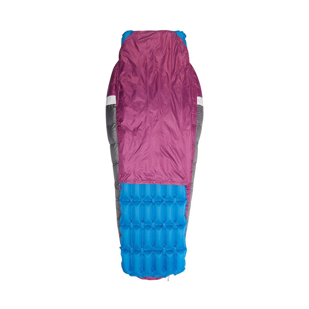 Sleeping pad sleeve keeps pad under you for comfort and warmth and replaces unnecessary bottom bag insulation