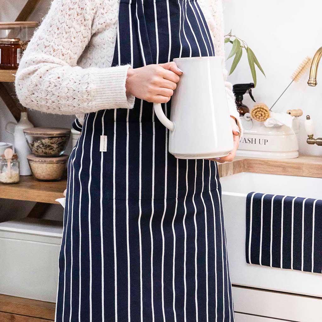 Cook up a storm in the kitchen without worrying about the odd splash or spill when you’re wearing this 100% cotton Bampton apron. With its traditional striped design, this quality kitchen apron is the perfect accessory for budding bakers or keen cooks. It’s fitted with a double front pocket with plenty of space to keep thermometers, cooking utensils and cutlery within easy reach. Adjustable neck and waist ties provide a comfortable and universal fit.
