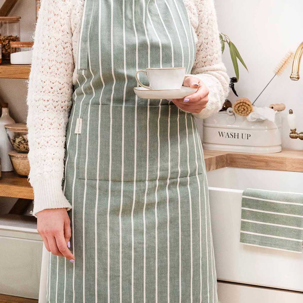 Cook up a storm in the kitchen without worrying about the odd splash or spill when you’re wearing this 100% cotton Bampton apron. With its traditional striped design, this quality kitchen apron is the perfect accessory for budding bakers or keen cooks. It’s fitted with a double front pocket with plenty of space to keep thermometers, cooking utensils and cutlery within easy reach. Adjustable neck and waist ties provide a comfortable and universal fit.