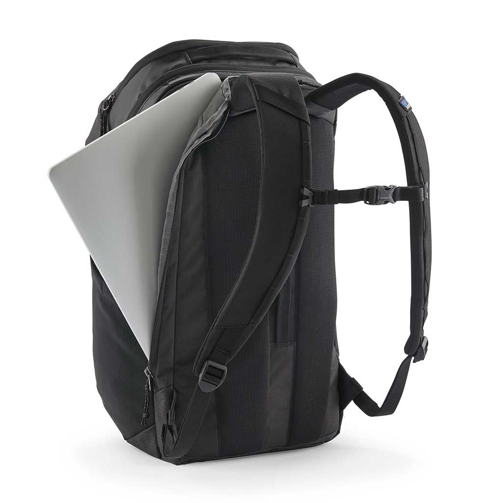 The Black Hole pack covers a lot of bases. Whether you're hiking, cycling, commuting or travelling the globe, it's stacked with features that'll keep your stuff protected and organised. At the heart of it all is the fabric – a super-tough recycled polyester ripstop with a matte-finish recycled TPU laminate coating that shrugs off heavy weather and abrasion. The back panel conceals a padded laptop pocket that you can access directly without opening the pack, while the 32-litre main compartment includes a zipped mesh pocket. You've also got zipped quick-access pockets on the top and front, daisy chain webbing, plus stretch mesh bottle pockets on the sides. The Black Hole pack is seriously comfortable to carry, with a breathable airmesh back panel, cushioned backpack straps and a sternum strap to hold everything in place. Travelling long-haul? No worries – you can use the vertical pass-through strap in the back panel to stack it on top of your wheely suitcase.
