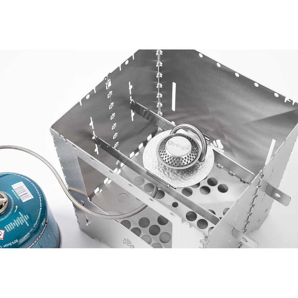 • Includes stainless steel trivets that can be inserted in various configurations to support pots and pans, or can be inserted into side slots to move a hot Bushbox