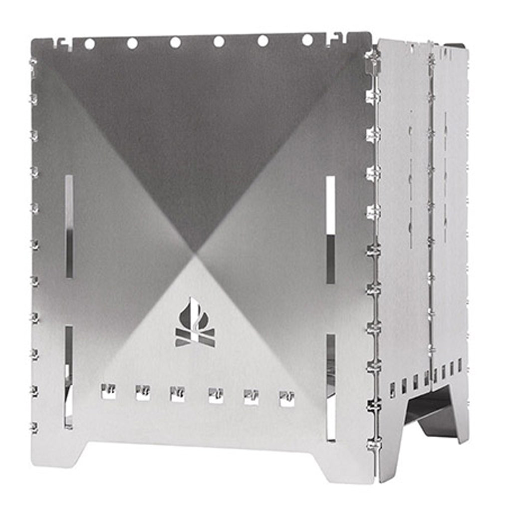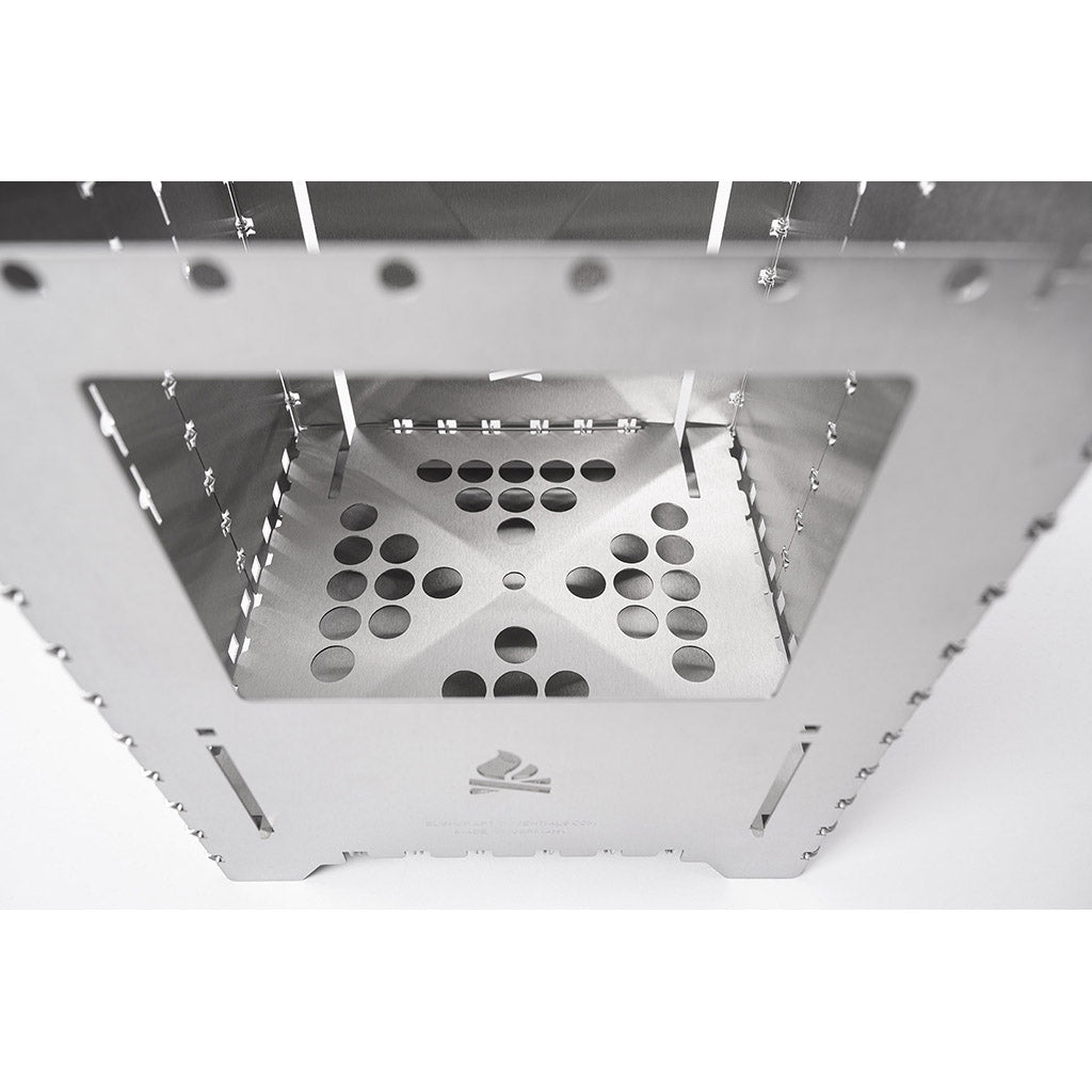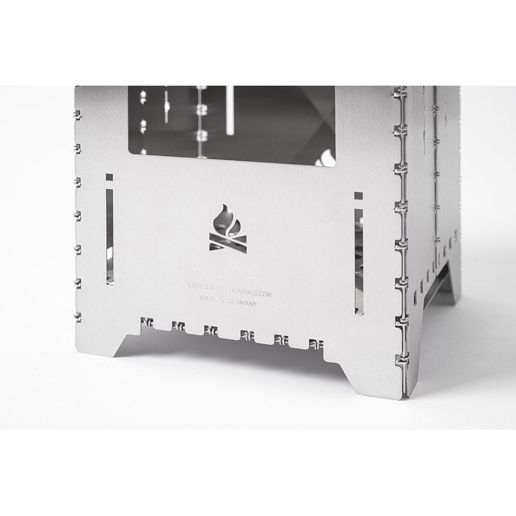 Bushcraft Essentials make incredibly clever wood-burning stoves that pack down flat when not in use, and take moments to set up. You can fuel the Bushbox with sticks, pinecones, charcoal, spirit burners, or even gas – and the unique design will make sure you don't damage the ground underneath. The Bushbox XXL+ is – as the name might suggest – their biggest model. It's German engineering at its most brilliant, folding down to barely a centimetre thick yet opening into a proper fire that'll cook for the whole crew and give you that mesmerising flicker of flames to wind the day down. The clever chimney effect means even damp kindling catches and burns efficiently. The integrated ash plate means you leave no trace, whilst the robust stainless steel construction guarantee this beauty will be lighting your fires for decades to come. Includes a heavy-duty canvas storage bag, with loops and a sturdy D-ring mount, alongside space for additional accessories.