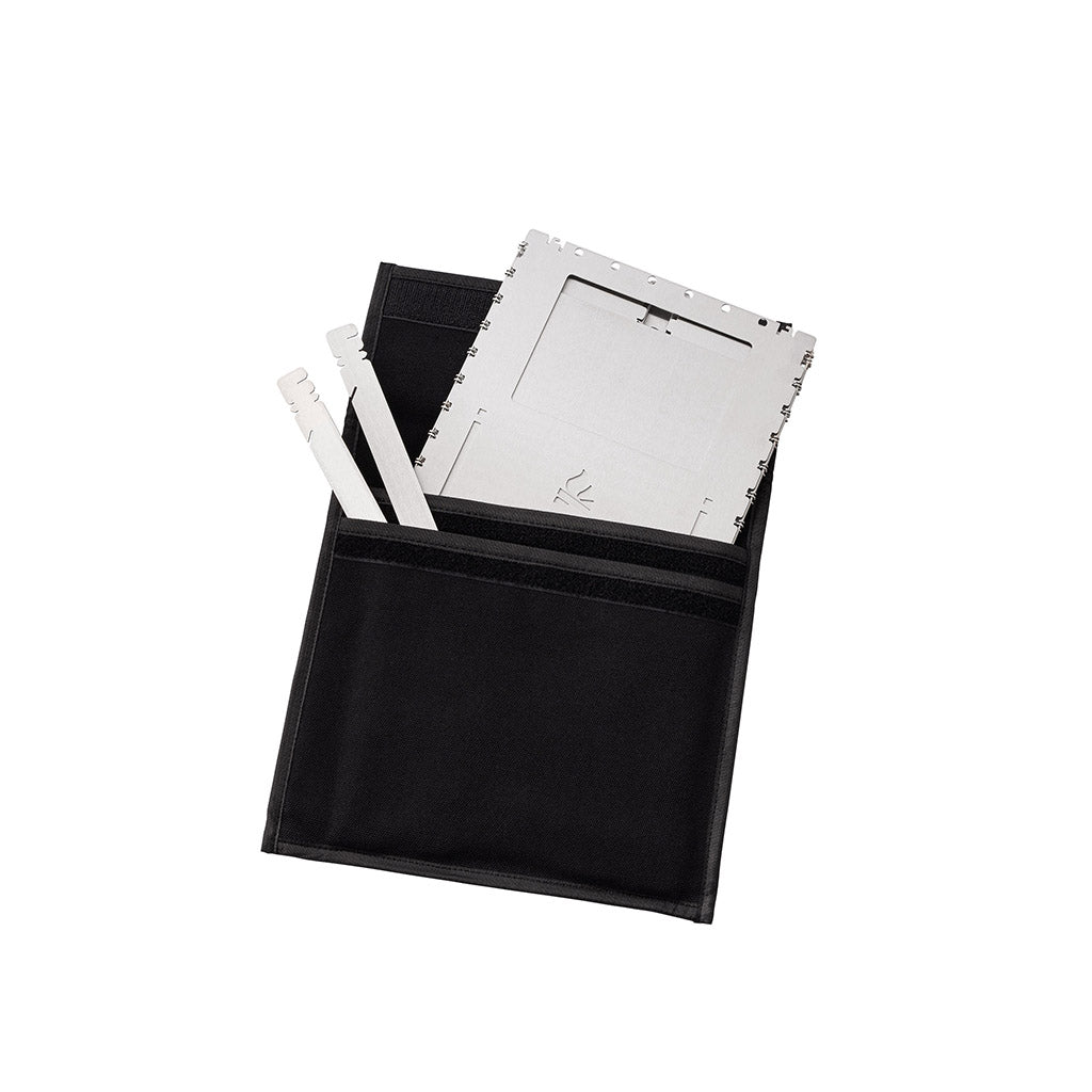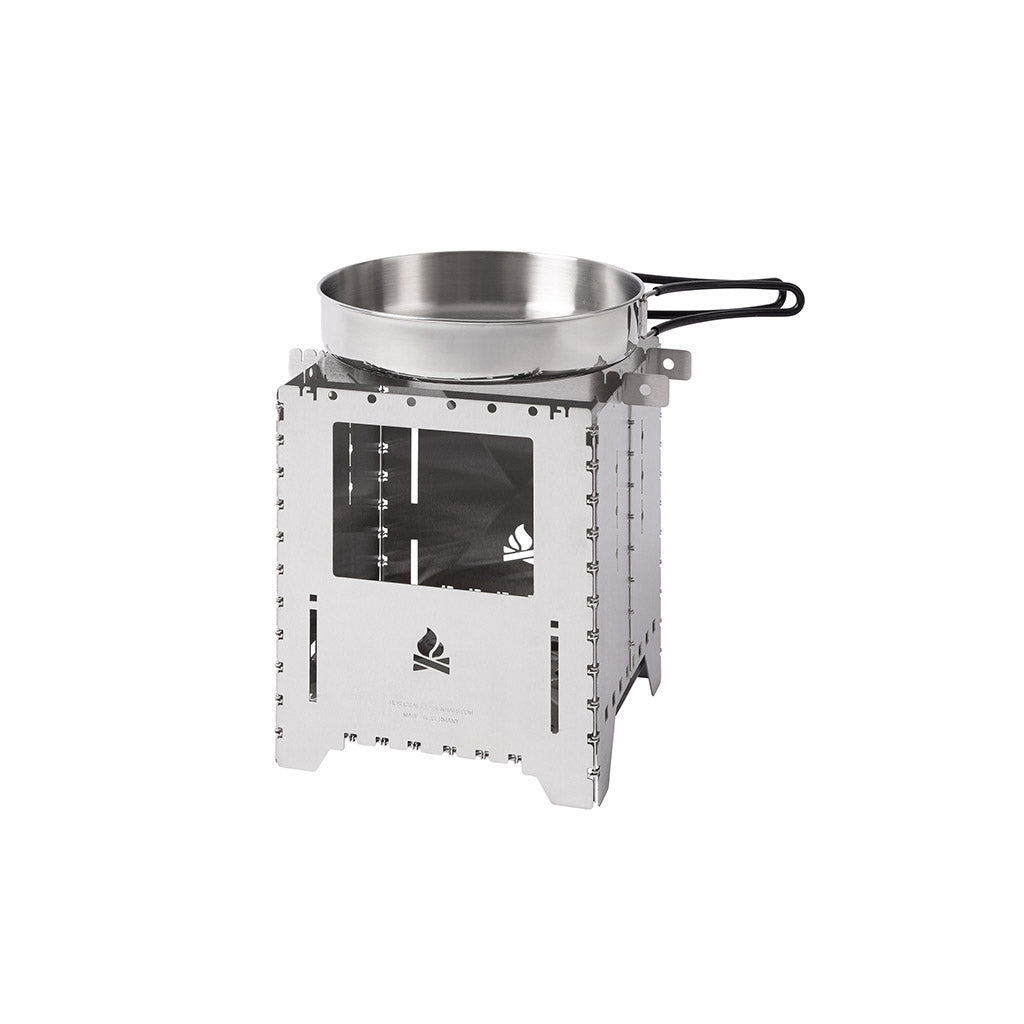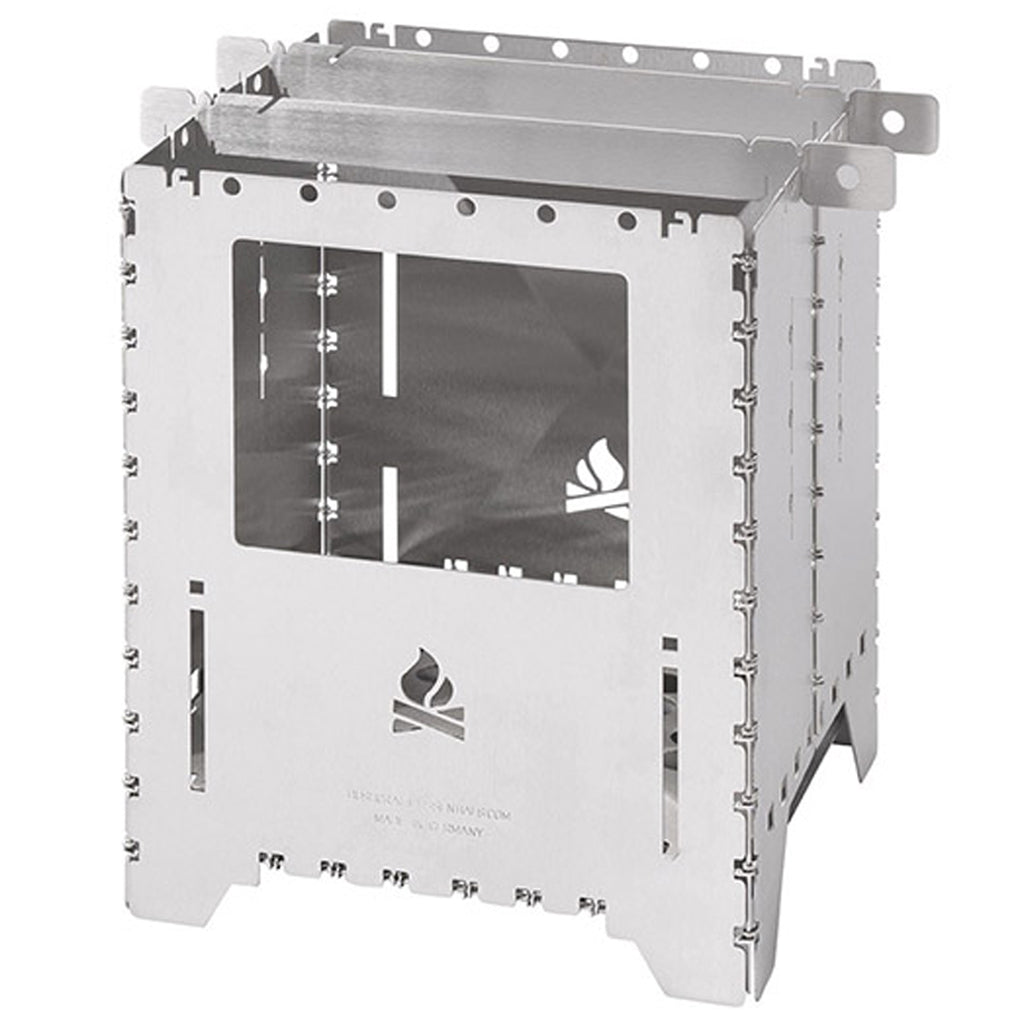 Bushcraft Essentials make incredibly clever wood-burning stoves that pack down flat when not in use, and take moments to set up. You can fuel the Bushbox with sticks, pinecones, charcoal, spirit burners, or even gas – and the unique design will make sure you don't damage the ground underneath. The Bushbox XXL+ is – as the name might suggest – their biggest model. It's German engineering at its most brilliant, folding down to barely a centimetre thick yet opening into a proper fire that'll cook for the whole crew and give you that mesmerising flicker of flames to wind the day down. The clever chimney effect means even damp kindling catches and burns efficiently. The integrated ash plate means you leave no trace, whilst the robust stainless steel construction guarantee this beauty will be lighting your fires for decades to come. Includes a heavy-duty canvas storage bag, with loops and a sturdy D-ring mount, alongside space for additional accessories.