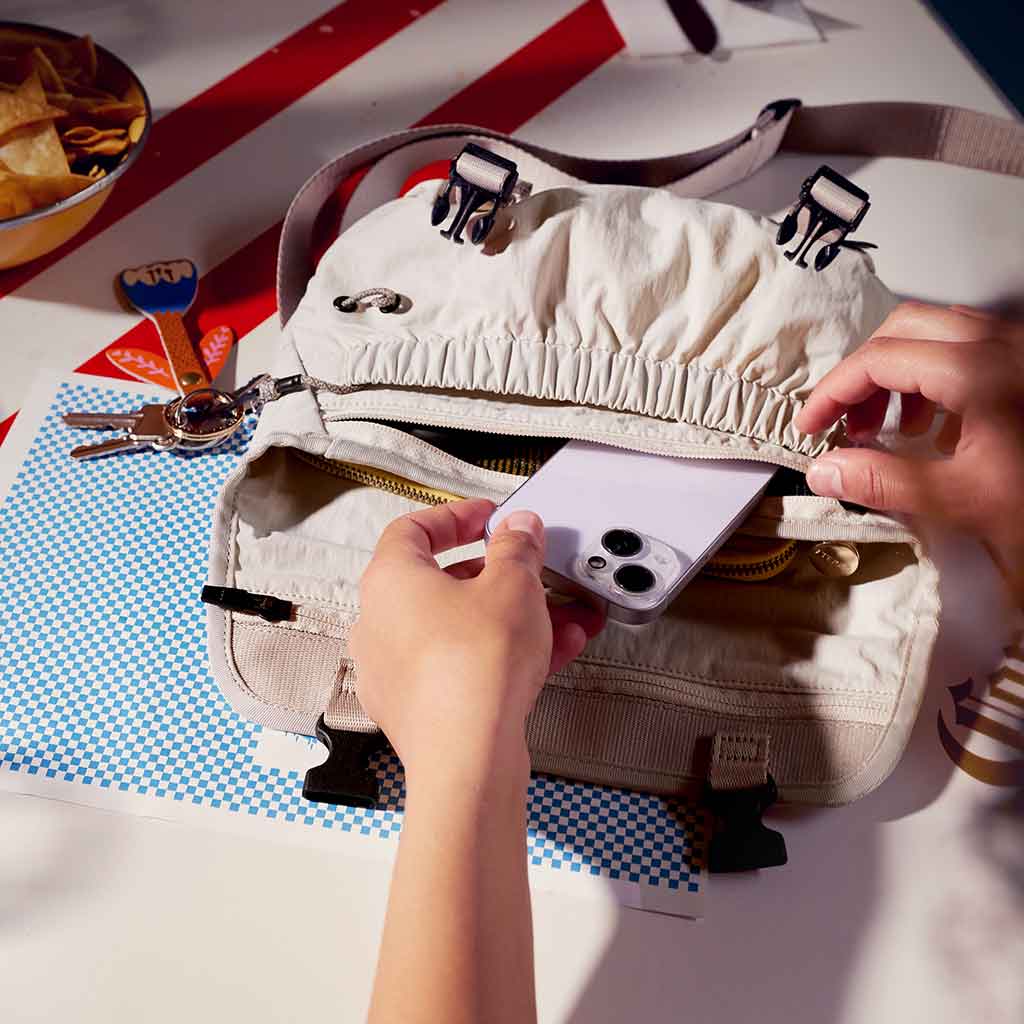 Students and professional couriers alike depend on the messenger bag, and for good reason. Lighter and more streamlined than a backpack, whilst also offering faster, fuss-free access, it’s a design optimised for everyday carry and the urban jungle. So, if you spent a lot of time commuting across town – whether that’s pounding pavements, tackling the tube, boarding buses or riding the roads – you’ll love Bellroy’s Cinch Mini Messenger. Wear it high and tight or sling it low: it’ll go with the flow, however you roll. The lightweight, low-bulk design hides a surprising amount of practical storage. Pop the side buckles to access the zippered and springy stretch pockets hidden beneath the flap for outside-the-bag organisation. Inside, you’ve also got a zippered pocket that’ll take a notebook. Metal strap hardware, YKK locking zips, a key carabiner and water-resistant fabric complete the package.