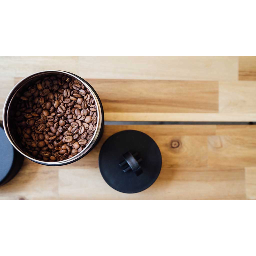 Holds a standard 12oz (340g) bag of beans, whole or ground