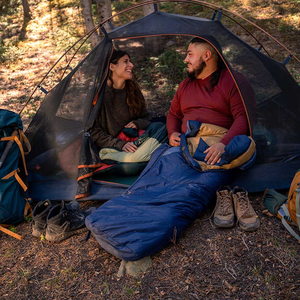 Balancing weight and warmth, this mummy-style sleeping bag is both light on weight and easy on your wallet. Synthetic insulation provides lightweight, compressible warmth and nylon taffeta fabric feels as soft as silk. It’s a great two to three season option, with warmth guaranteed down to zero degrees. The roomy footbox gives you more room to wriggle your toes and there’s a handy stash pocket for your phone too, to help keep it warm and prolong battery life.