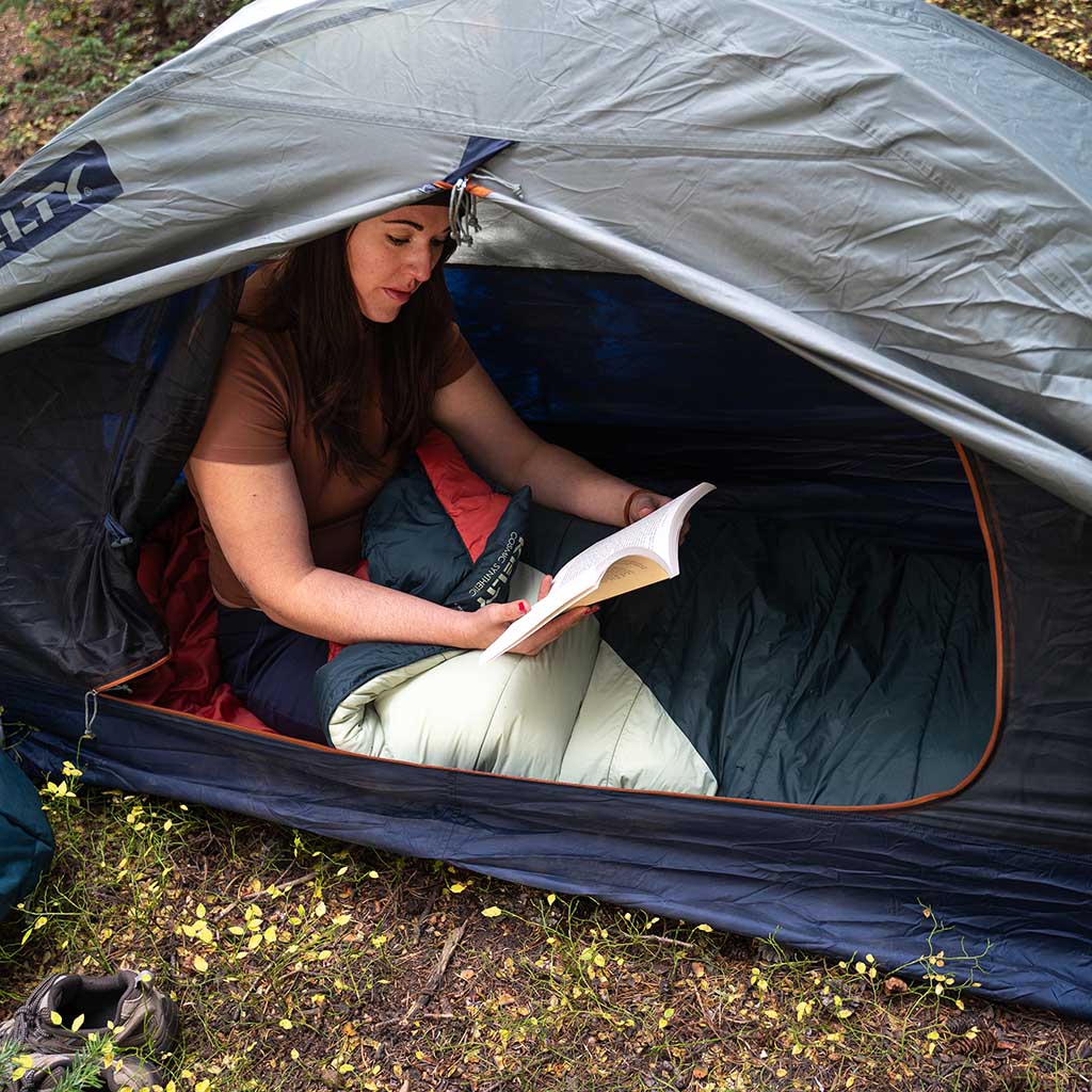 Balancing weight and warmth, this mummy-style sleeping bag is both light on weight and easy on your wallet. Synthetic insulation provides lightweight, compressible warmth and nylon taffeta fabric feels as soft as silk. It’s a great two to three season option, with warmth guaranteed down to zero degrees. The roomy footbox gives you more room to wriggle your toes and there’s a handy stash pocket for your phone too, to help keep it warm and prolong battery life.