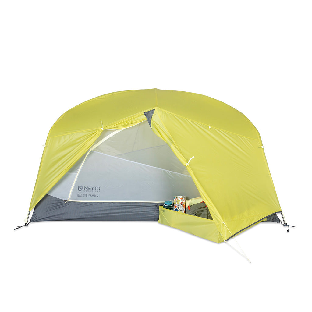 The design-driven Dagger boasts more internal space than any other tent in its class, without the weight penalty. Tipping the scales at just over 1.5kg, it is light enough for backpacking, yet roomy enough to comfortably accommodate two hikers plus all their gear. The Dagger OSMO has now had a top-grade update too, with a more sustainable recycled, PFC-free fabric plus extra features that enhance liveability. This includes a handy waterproof storage area in the porch called a ‘landing zone’ (ideal for stashing your pack), a redesigned ‘divvy cube’ stuff sack for easier packing and ‘gatekeeper’ tiebacks that allow you to roll back the flysheet door one-handed. Otherwise, the Dagger’s carefully considered design remains unchanged, incorporating features such as pre-bent poles to create more headroom. Twin doors and porches enable campers to clamber out at night without disturbing a snoozing partner. Other clever storage solutions include ample gear pockets and overhead pockets with a light-diffusing fabric that turns a headtorch into a tent lantern. It’s all engineered to make life on the trail easy.