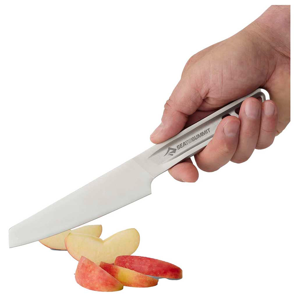 Meat, carrots, spuds, bananas... all will fall before this mighty blade. Made in cast stainless steel for corrosion and stain-resistance, it's a general-purpose camp kitchen knife that balances nicely in your hand. The high-grade steel will stay nice and sharp, and it comes with a blade protector to make sure only the food comes into contact with that razor edge.
