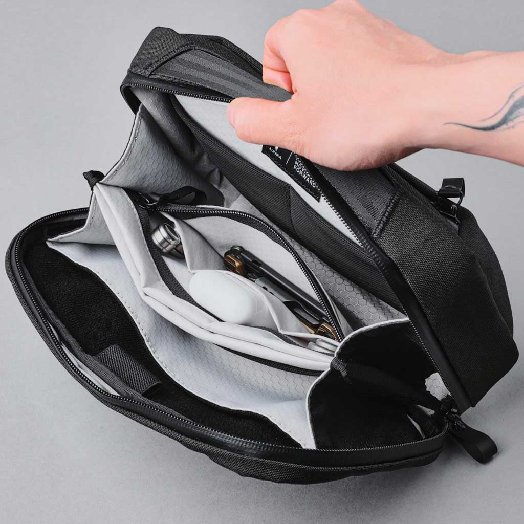 • Easily transforms into a sling bag