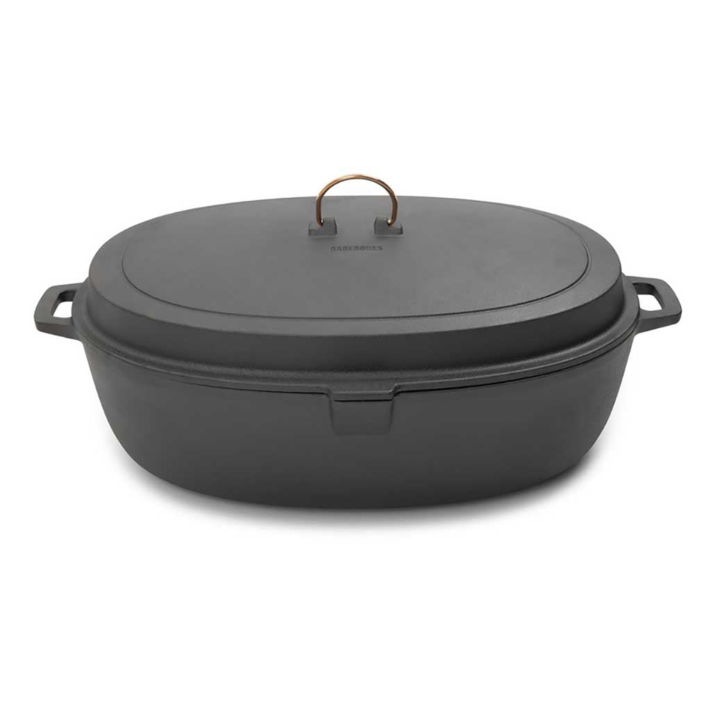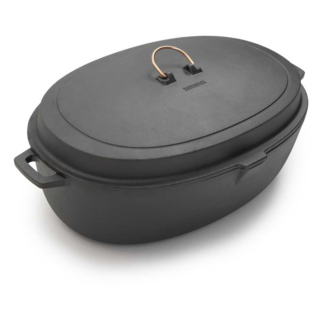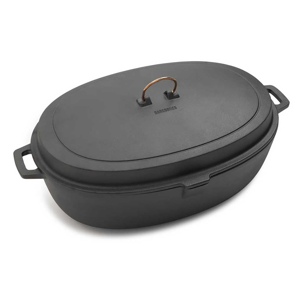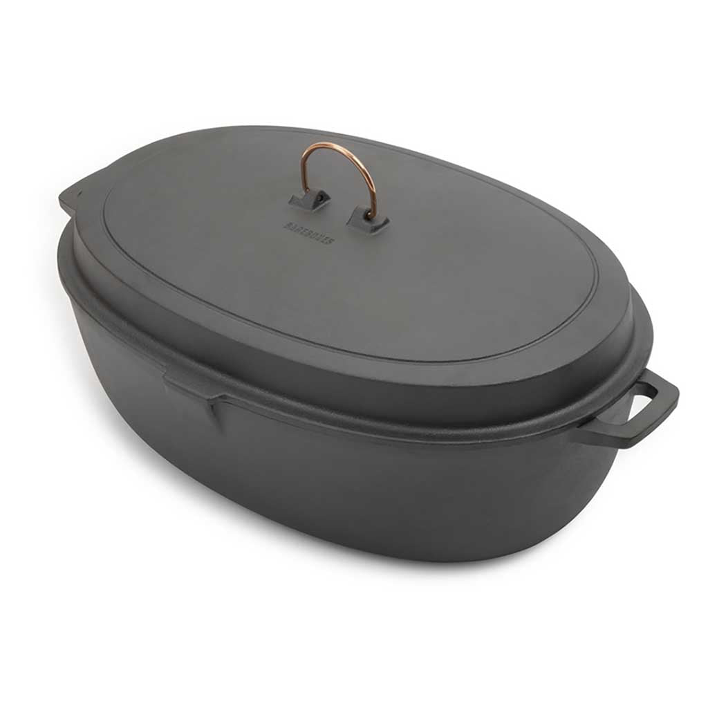 There's something timeless about cooking with cast-iron pans, but they've got their drawbacks too. Washing-up liquid and acidic ingredients can break down the seasoning, and food often sticks to the metal, especially if you're roasting at hot temperatures. No such worries with this lidded roasting pot from Barebones though. While the exterior is your classic uncoated cast iron, it's lined with vintage white-coloured enamel, for a non-stick finish that's low-maintenance and easy to clean up afterwards. Smart enough to use in your home and rugged enough for the campfire kitchen, the long-lasting enamel coating offers fuss-free cookware without a side-order of Teflon flakes in your dinner..