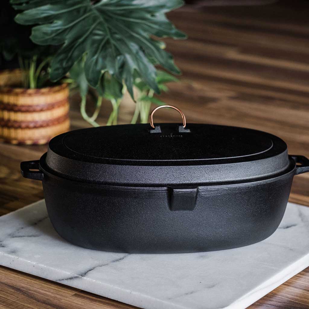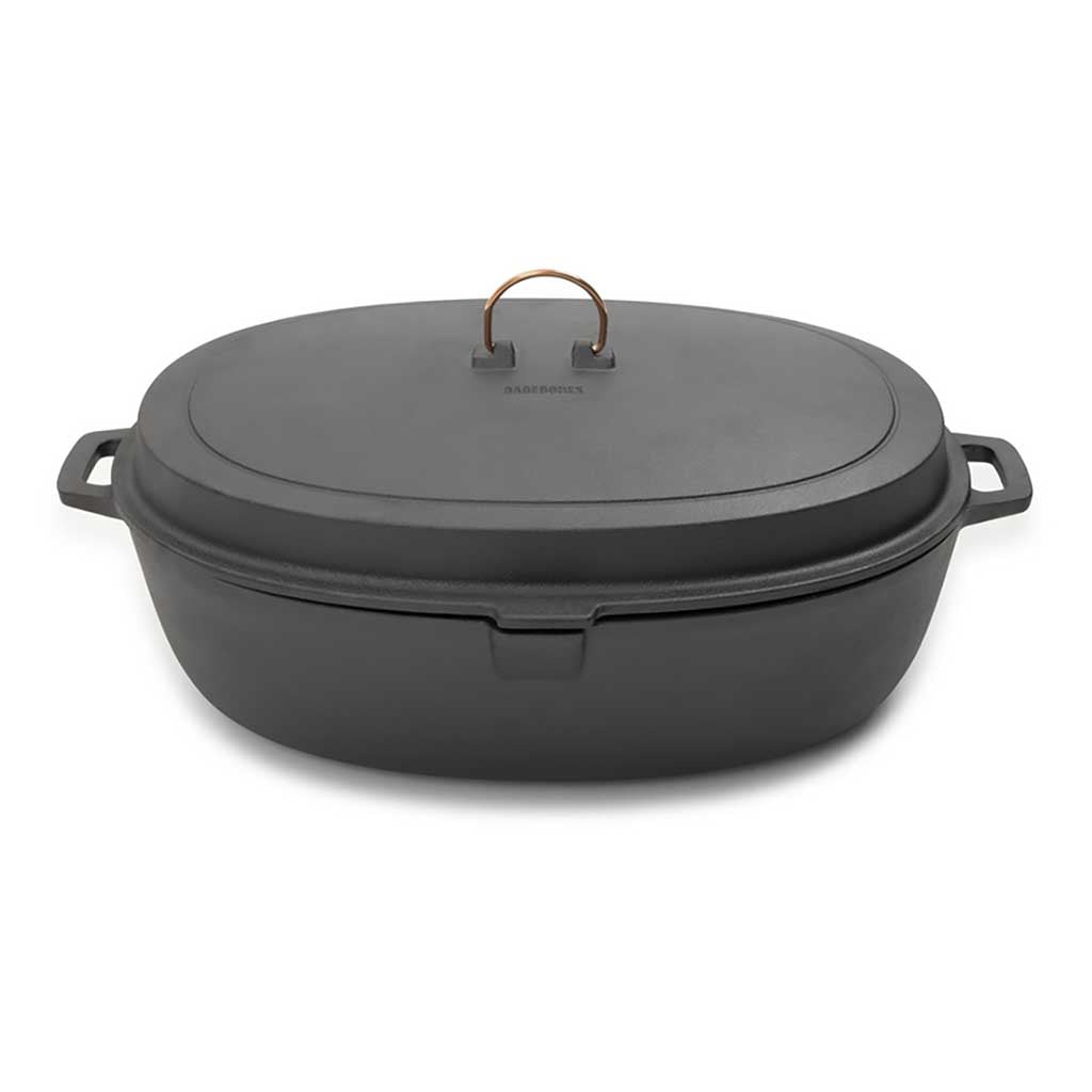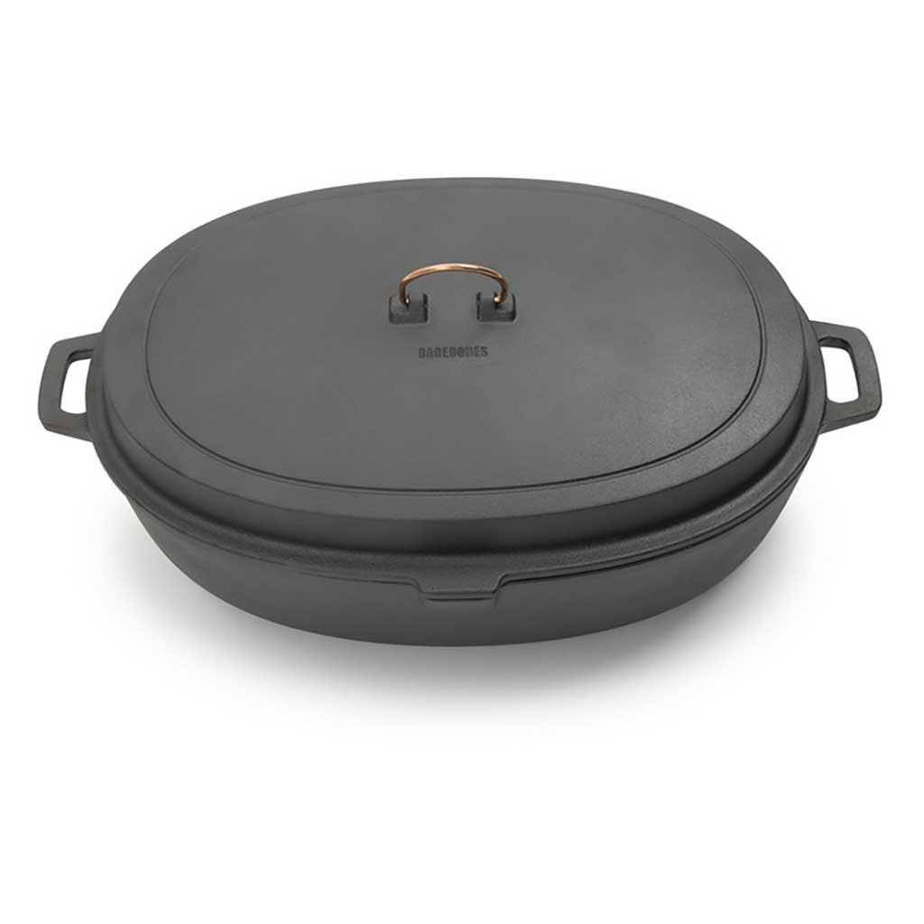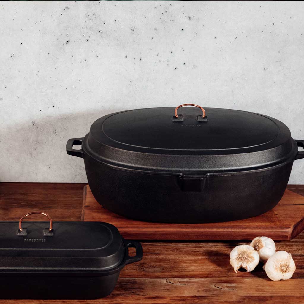 There's something timeless about cooking with cast-iron pans, but they've got their drawbacks too. Washing-up liquid and acidic ingredients can break down the seasoning, and food often sticks to the metal, especially if you're roasting at hot temperatures. No such worries with this lidded roasting pot from Barebones though. While the exterior is your classic uncoated cast iron, it's lined with vintage white-coloured enamel, for a non-stick finish that's low-maintenance and easy to clean up afterwards. Smart enough to use in your home and rugged enough for the campfire kitchen, the long-lasting enamel coating offers fuss-free cookware without a side-order of Teflon flakes in your dinner..