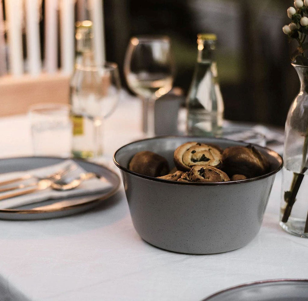 Whether you’re making a Bake Off-inspired showstopper cake or just knocking up a simple loaf, this two-piece mixing bowl set is a kitchen essential. It consists of large and small enamel bowls that are ideal for mixing wet or dry ingredients when baking and cooking. And though it looks fashionably retro, enamelware is also supremely practical, being lightweight, durable and shatterproof, whether you use them indoors or out. Each bowl also features a hand-finished baked stainless-steel rim, creating a bronze-like patina finish, resulting in unique yet cohesive pieces that complement the rest of the Barebones range.