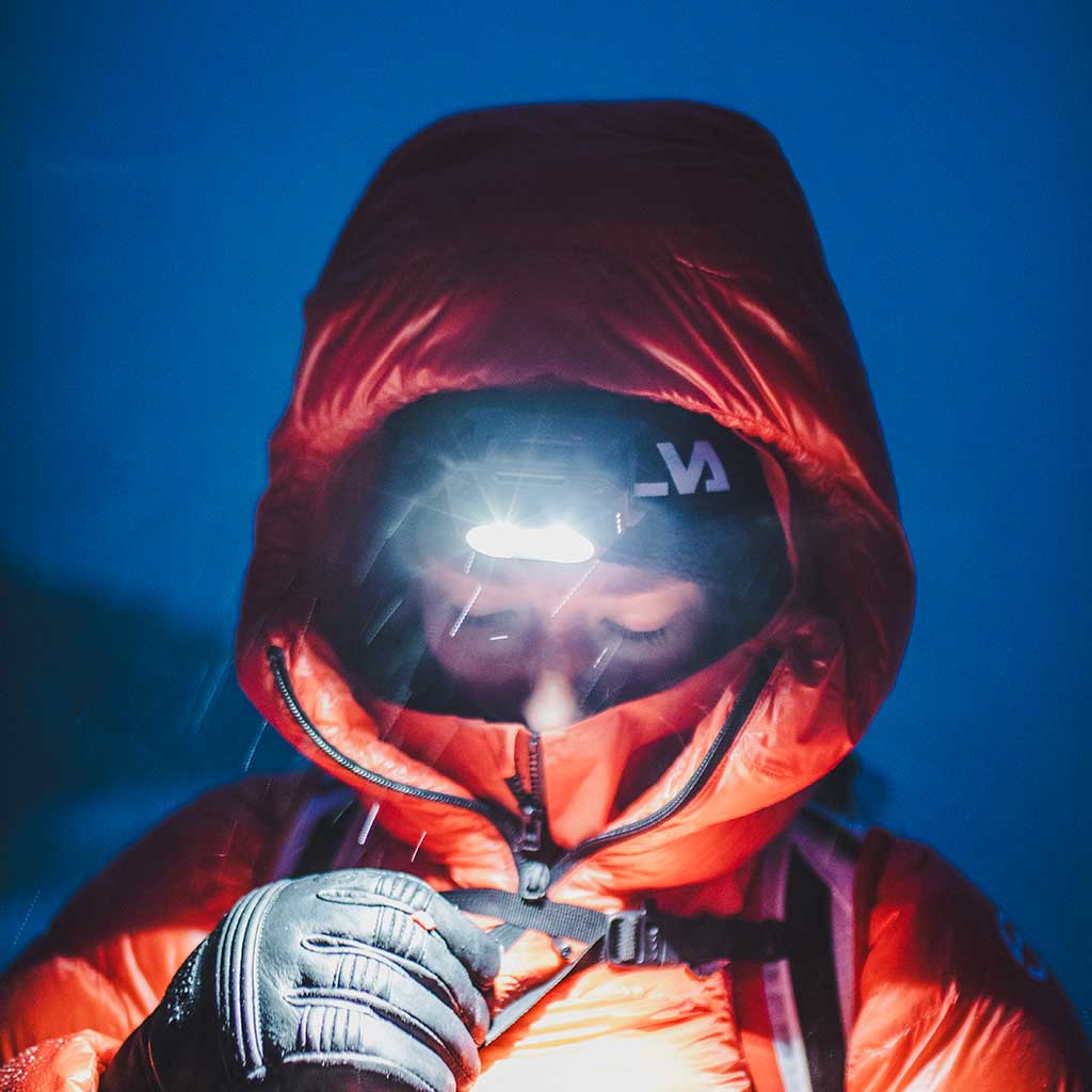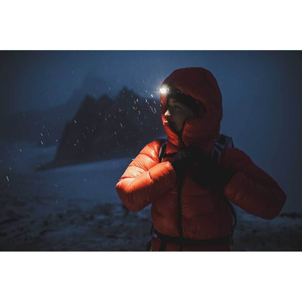 Silva have been making head torches since 1935 – so it's a business they know a thing or two about. This Explore 5 is one of their most versatile models, balancing powerful light output against impressive battery life. It's got four light modes, and the maximum level of 700 lumens will reach up to 115m. At that power you get around 2–3 hours of light, but turn it down a bit and your burn time shoots right up to 10 hours+. It uses Silva's 'Intelligent Light' combination beam, with a long-range spot and close-range flood that feels comfortable on the eye. You've also got a red night vision light and an orange one for map reading. Dust-tight and fully waterproof, the Explore comes on a wide, adjustable headband, with an optional helmet mount included. Battery-wise, it's your usual integrated USB-C rechargeable with a 2hr charge time and a 4-level charge indicator.
