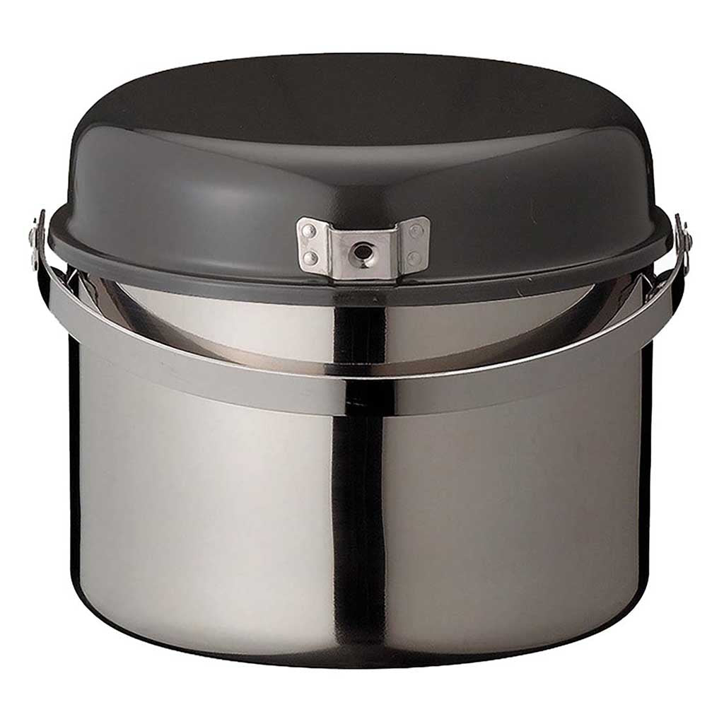 There are plenty of fancy camp pans on the market, but it's not often you find a full set that nests together as neatly as the Field Cooker Pro cook set from Snow Peak. Consisting of two billies (2.6-litre and 4.3-litre), a mesh sieve/colander, and a frying pan with a detachable wooden handle, the whole lot packs down into the larger billy with the upturned frying pan as a cap. Both billies have lids, the biggest of which also fits the frying pan. Everything is made out of top-quality steel, and the billies have sturdy 0.5mm thick bases for years of use. A nice extra touch is the frying pan handle case that can also be used as a mini oven mitt. Recommended for gas or charcoal cooking, the Field Cooker Pro pans are available in this smaller four-piece package or in a five-piece set that features a bigger frying pan and an additional extra-large billy.