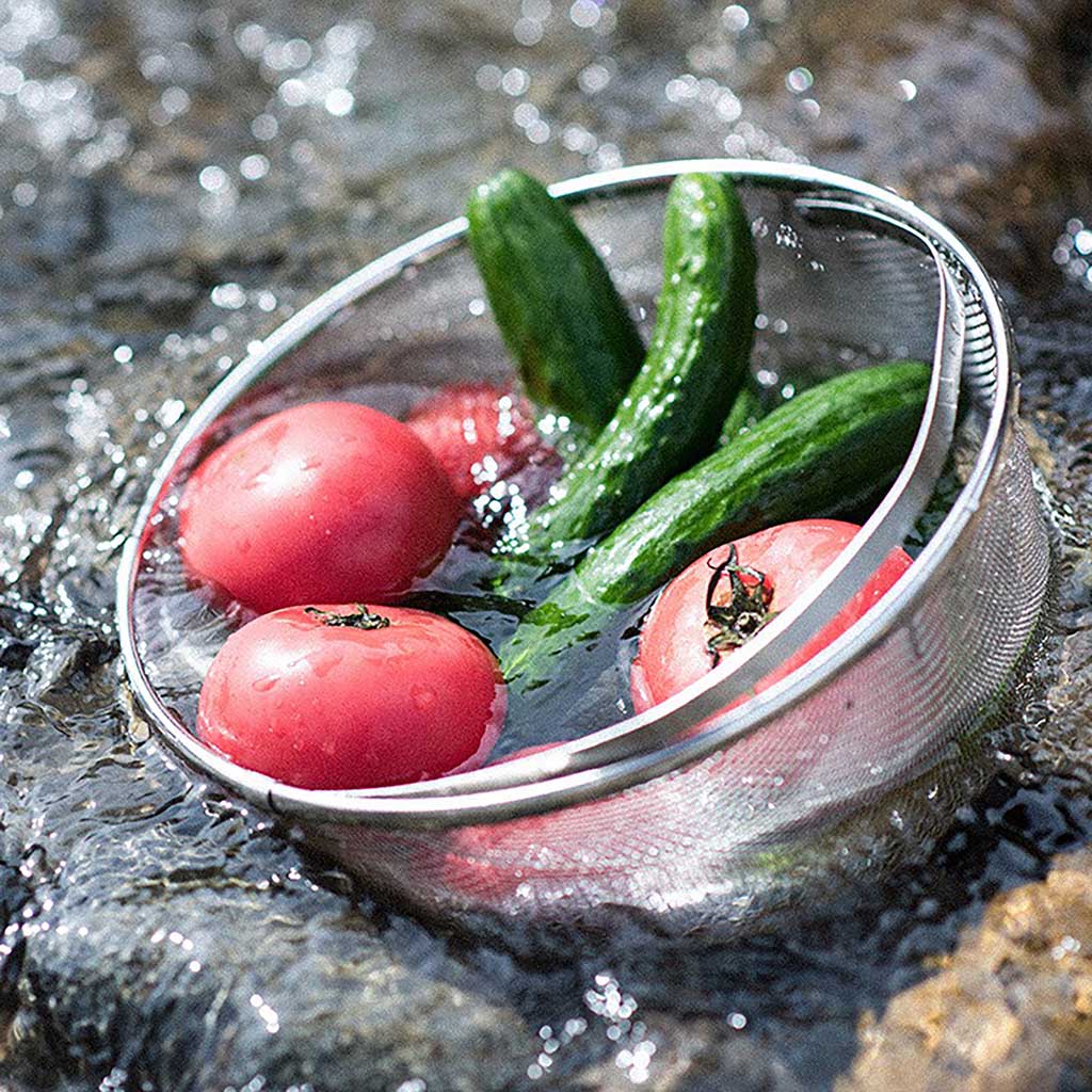 • Set of 2 nesting pots plus mesh sieve and frying pan