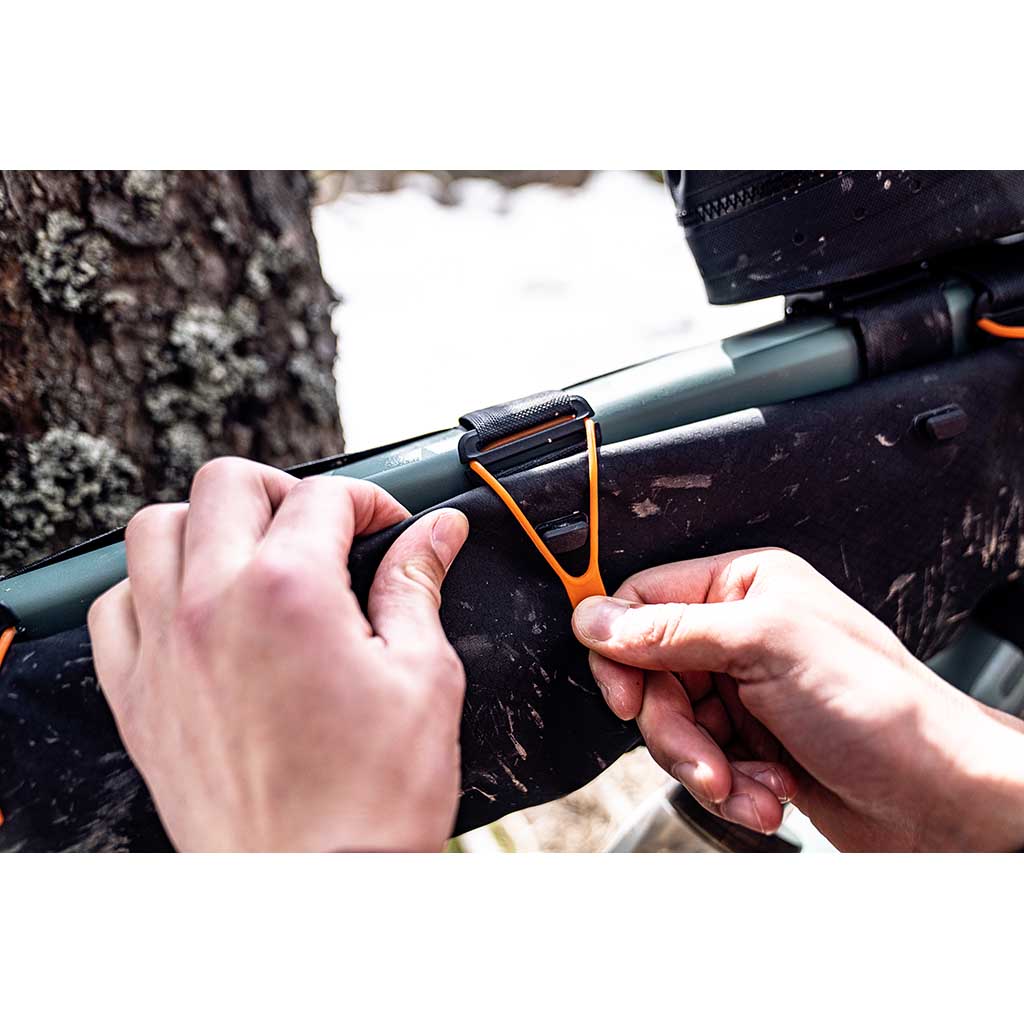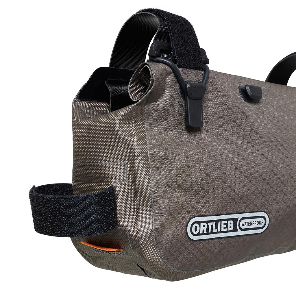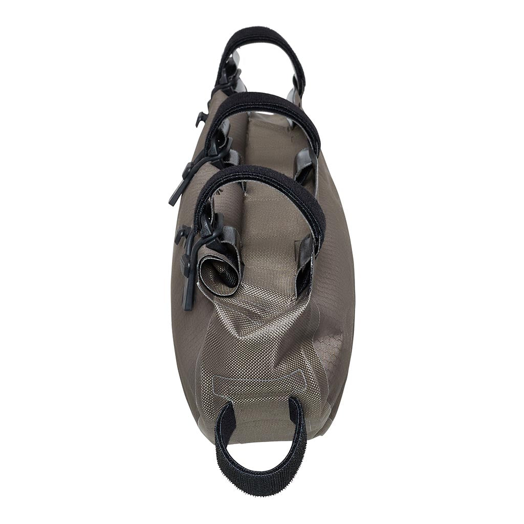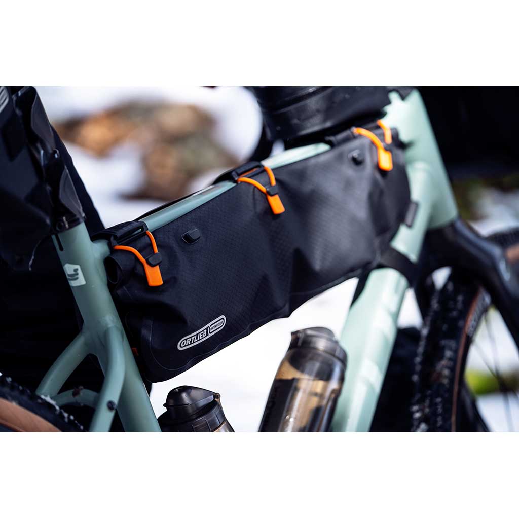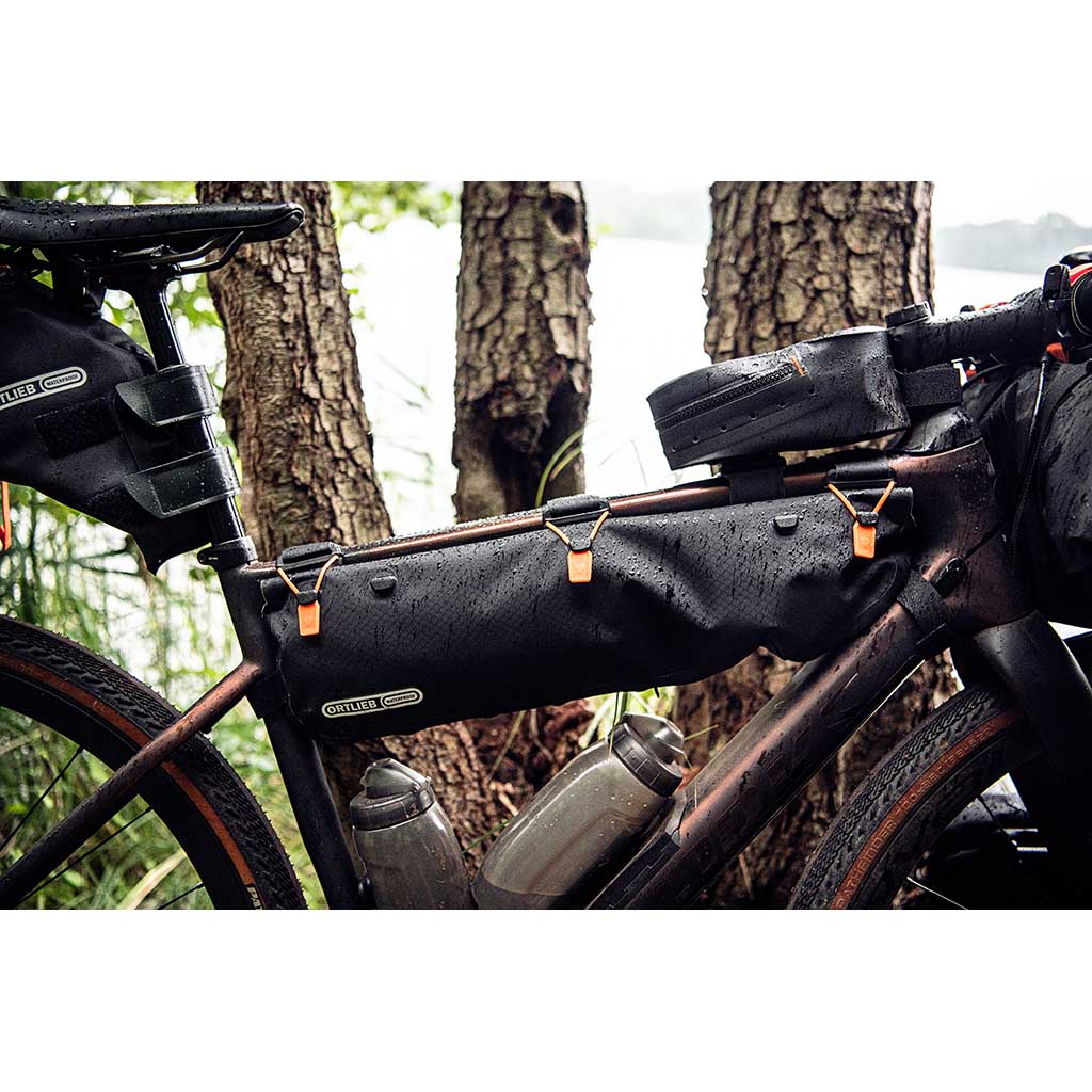 - Lightweight but fully waterproof bikepacking toptube frame pack with abrasion-resistant, PU-coated nylon fabric and rolltop closure