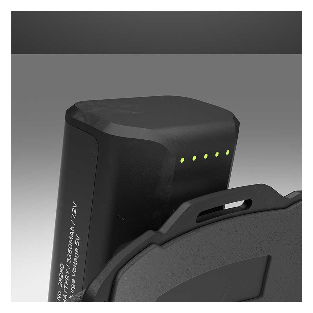 Powerful 36 Wh Li-ion 5Ah battery with 5-level charge indicator and USB-C charge cable
