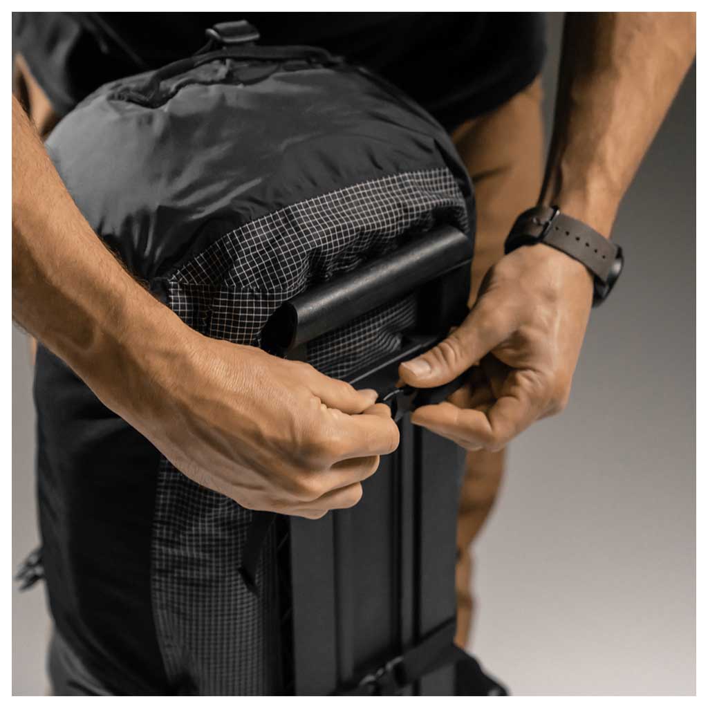 • Compresses for travel; invert into front pocket to contain straps or compress further using included mesh compression sack