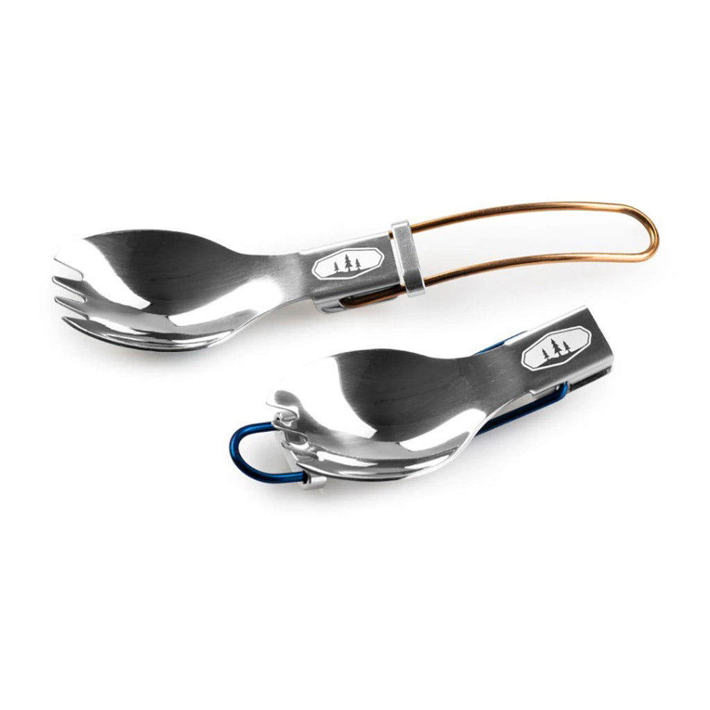 - Folding recycled metal sporks go from 4” pack length to 6” eating length