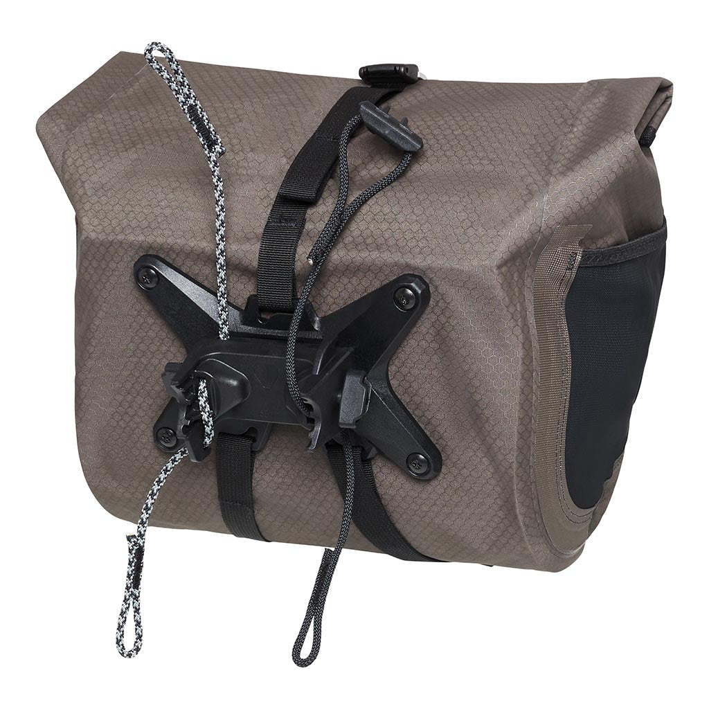 Bikes are a great way to get from A to B, but they don’t have much in the way of on-board storage. The solution is Ortlieb’s range of bikepacking bags, including their nifty Handlebar Pack QR. This roomy 11 litre bag is the perfect size to stow a sleeping bag and mat. A waterproof rolltop closure always ensures quick access to your gear, while internal compression straps keep contents secure. But its most innovative feature is Ortlieb’s new Bar-Lock fastening system, which enables the pack to be attached and removed from your handlebars in seconds. This adds practicality for bikepacking, touring, travel and commuting. Take it with you, remove it altogether or swap it on to another bike. Mounting and removal takes seconds, needs no tools or screws yet is still secure enough to handle rough terrain.
