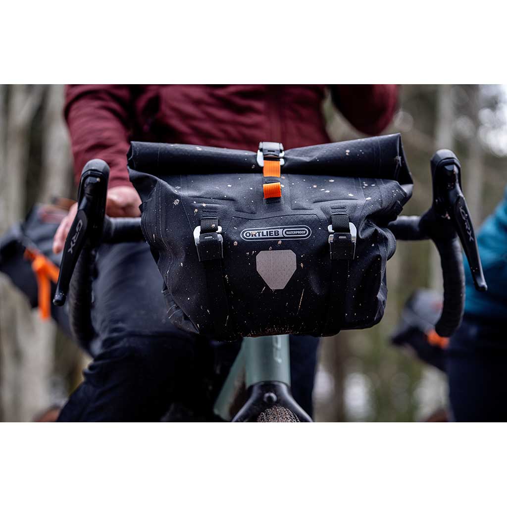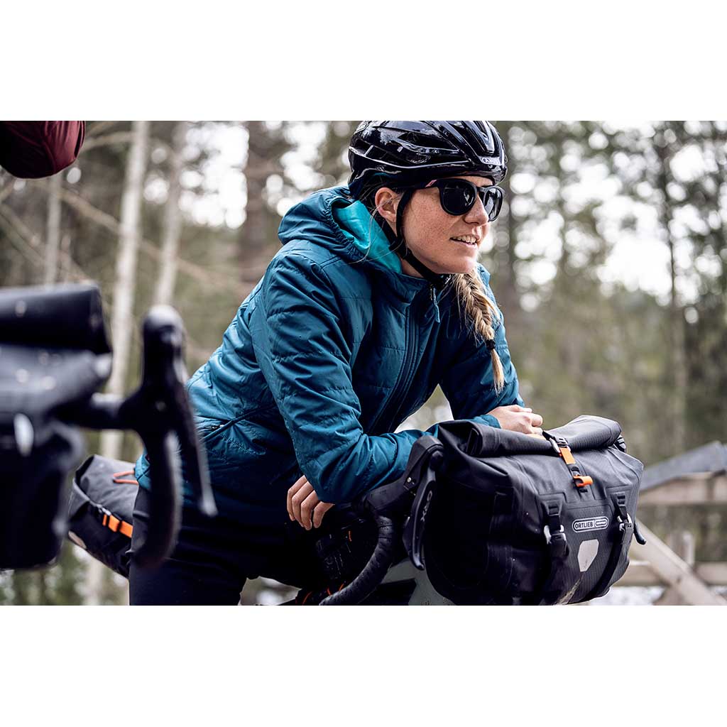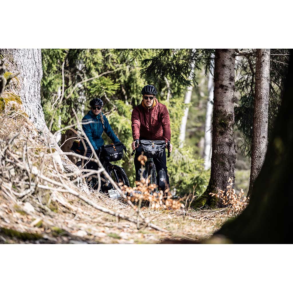 Bikes are a great way to get from A to B, but they don’t have much in the way of on-board storage. The solution is Ortlieb’s range of bikepacking bags, including their nifty Handlebar Pack QR. This roomy 11 litre bag is the perfect size to stow a sleeping bag and mat. A waterproof rolltop closure always ensures quick access to your gear, while internal compression straps keep contents secure. But its most innovative feature is Ortlieb’s new Bar-Lock fastening system, which enables the pack to be attached and removed from your handlebars in seconds. This adds practicality for bikepacking, touring, travel and commuting. Take it with you, remove it altogether or swap it on to another bike. Mounting and removal takes seconds, needs no tools or screws yet is still secure enough to handle rough terrain.