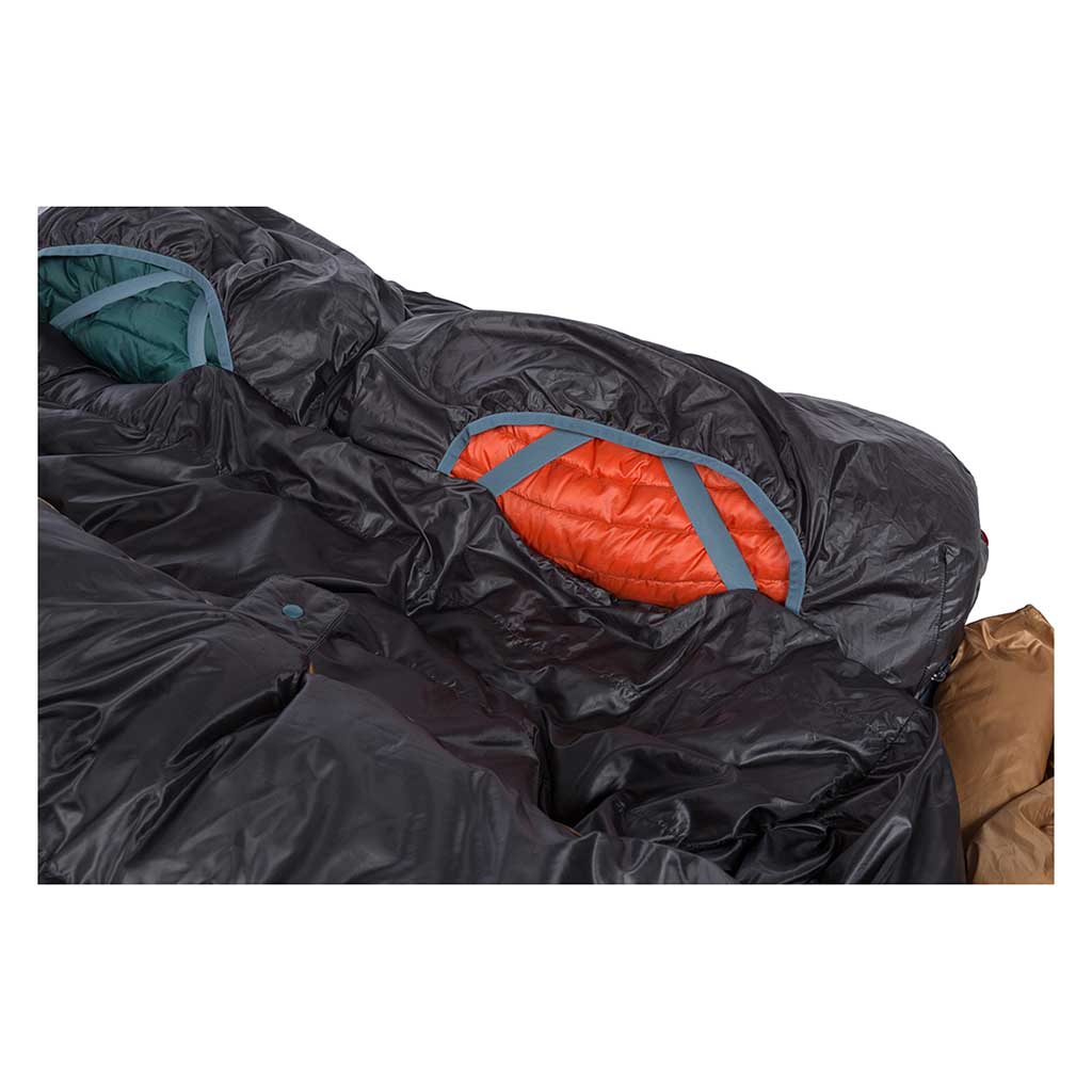 Like a double bed fit for the great outdoors, Big Agnes’ King Solomon 20 lets you better cosy up with the person you love for a restful night’s sleep. Ideal for couples who adventure together, it’s lighter and more packable than 2 comparable single sleeping bags, and it comes with a bunch of smart features that make it the most comfortable choice for versatile 3-season camping in pairs. Take the integrated Padlok system, for example: This holds two pads together for a more stable and more comfortable sleeping base. Or take the 650-fill power bluesign certified down filling: This makes the King Solomon Double Wide super lightweight and remarkably packable for a double sleeping bag — perfect for long-distance trips, thru-hikes or weekend wildcamping trips. Oh, and with the topper easily unzipping into a free-flowing quilt, the King Solomon is almost as comfortable as your double bed at home. But try taking that backpacking with you.