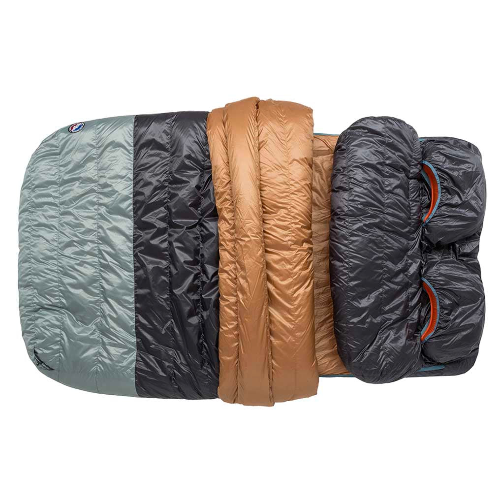 Weighs less and packs down smaller than two comparable single sleeping bags