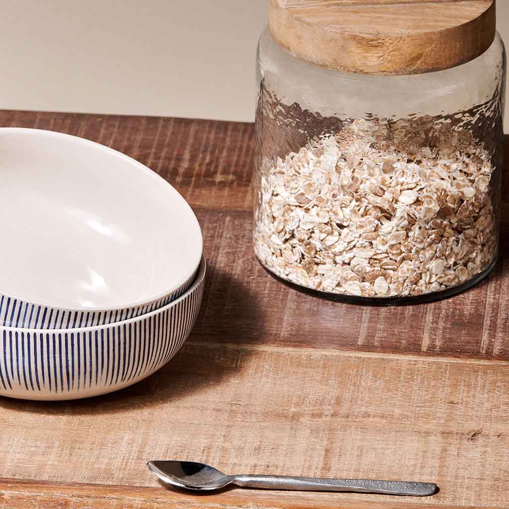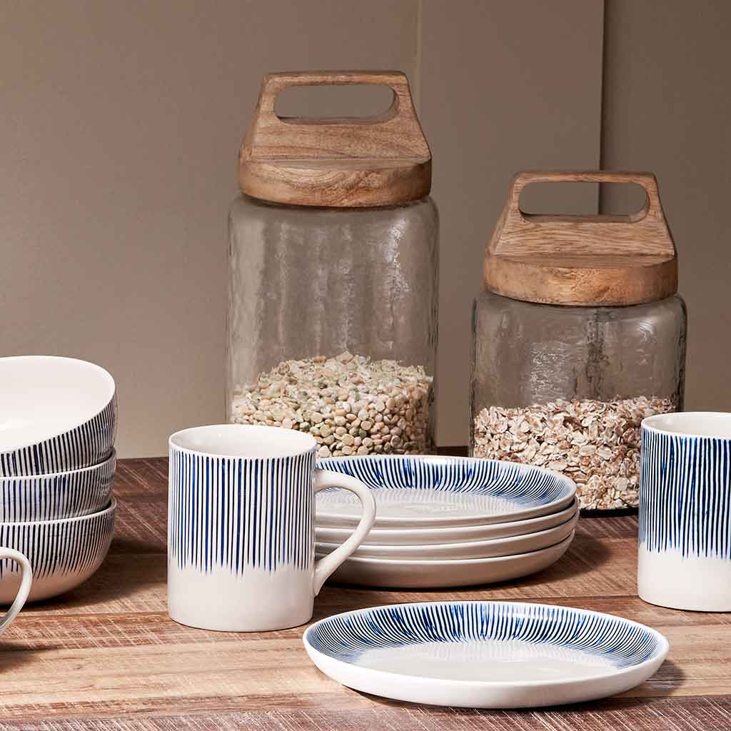 Moving to rural Devon on their return, the couple set up a travelling market stall – and when that took off, they started collaborating with a family they'd met in India to design and produce beautiful handcrafted homewares. In those early days, they operated out of an old hayloft on Dartmoor, packing orders late into the night while their baby daughter snoozed in a cardboard cot under a pile of coats.