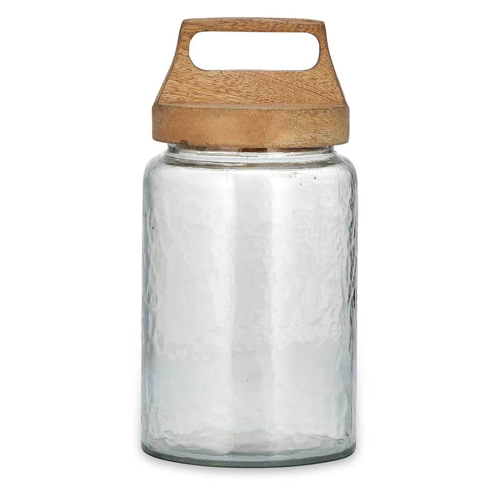 - Food storage jars in clear recycled glass with a textured finish