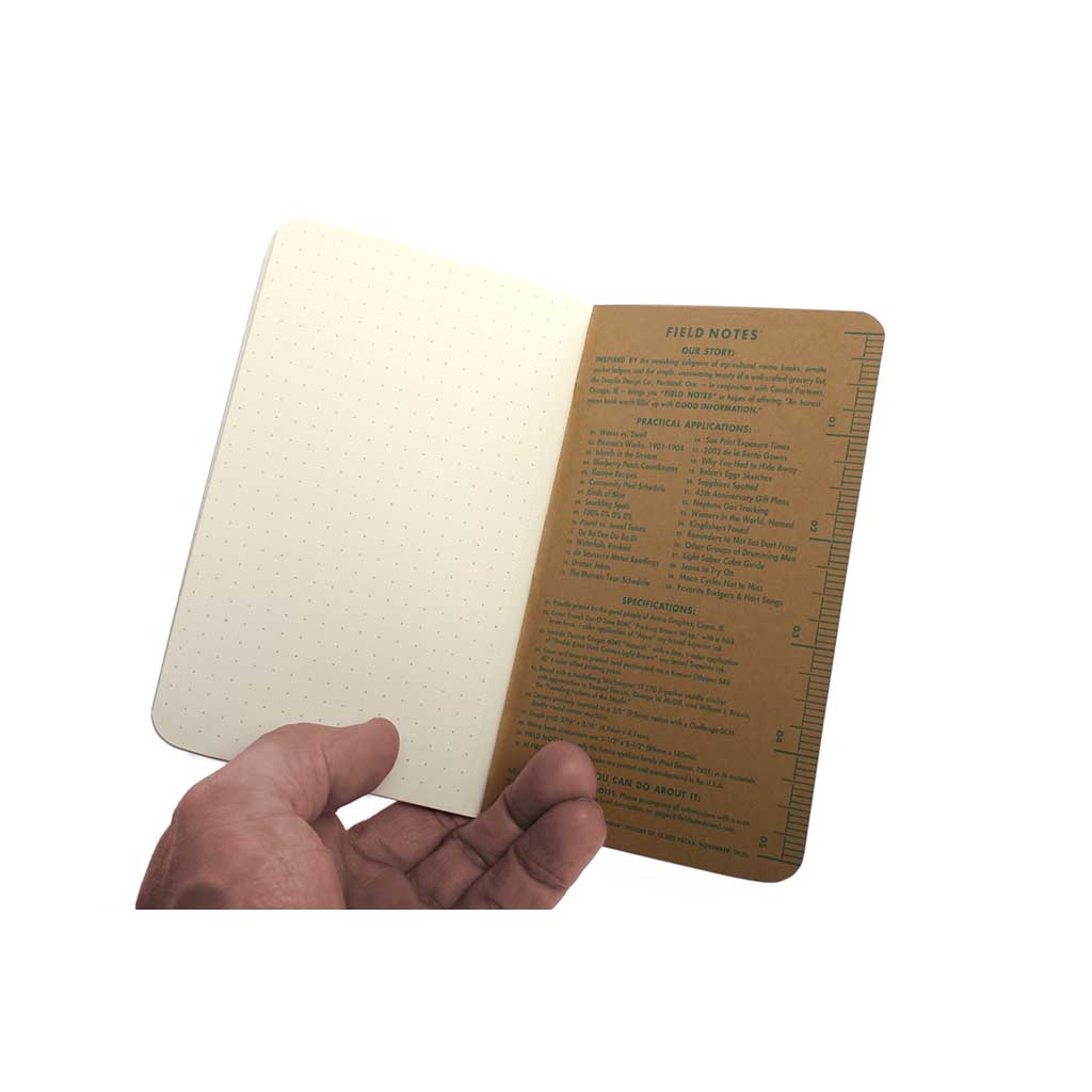 • They say that ‘the devil is in the detail’. And when it comes to details, Field Notes take their pocket memo books and desktop notebooks very seriously. Paying meticulous attention to every element of the design and manufacturing process, they spend hundreds of hours thinking about the best cover stocks, paper grades and print inks. Heck, even the colours of the staples they use to saddle-stitch their notebooks are carefully chosen to complement each design.