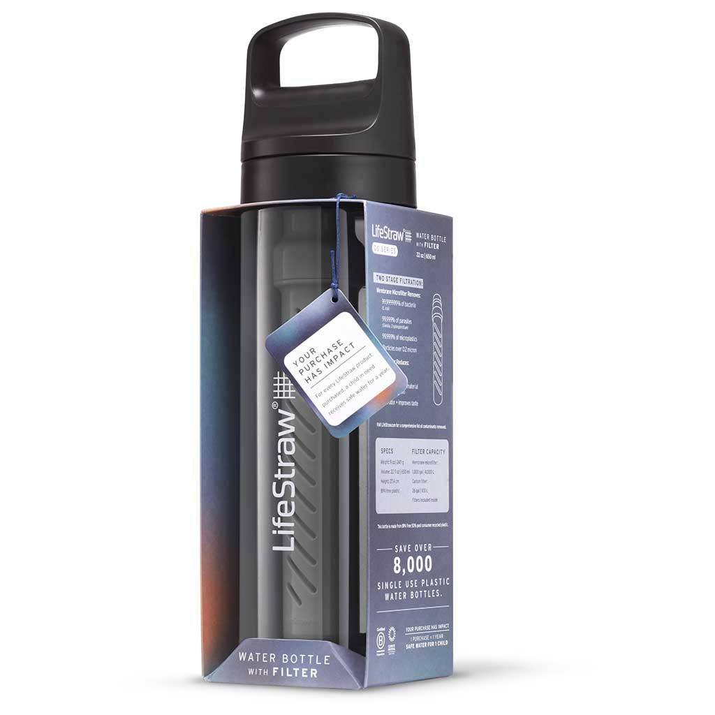 LifeStraw Go Series is the ultimate sidekick for safer, better-tasting water for travel and everyday use. The BPA-free bottle filters out nasties, so you can fill up from airport bathrooms, a tap in Mexico, or a gas station while road-tripping. The advanced 2-stage filter improves taste and protects against bacteria, parasites, microplastics, chlorine, silt, sand, and cloudiness. The BPA-free bottle is made from 50% post -consumer recycled plastic. Do good on the go and avoid single-use plastic bottles. For every purchase, a child in need receives to safe drinking water for a year.