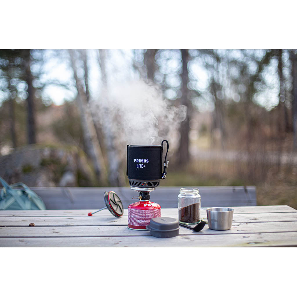 • Lightweight burner locks securely to the pot when in use and stows conveniently inside along with a 100g gas canister for ultimate packability