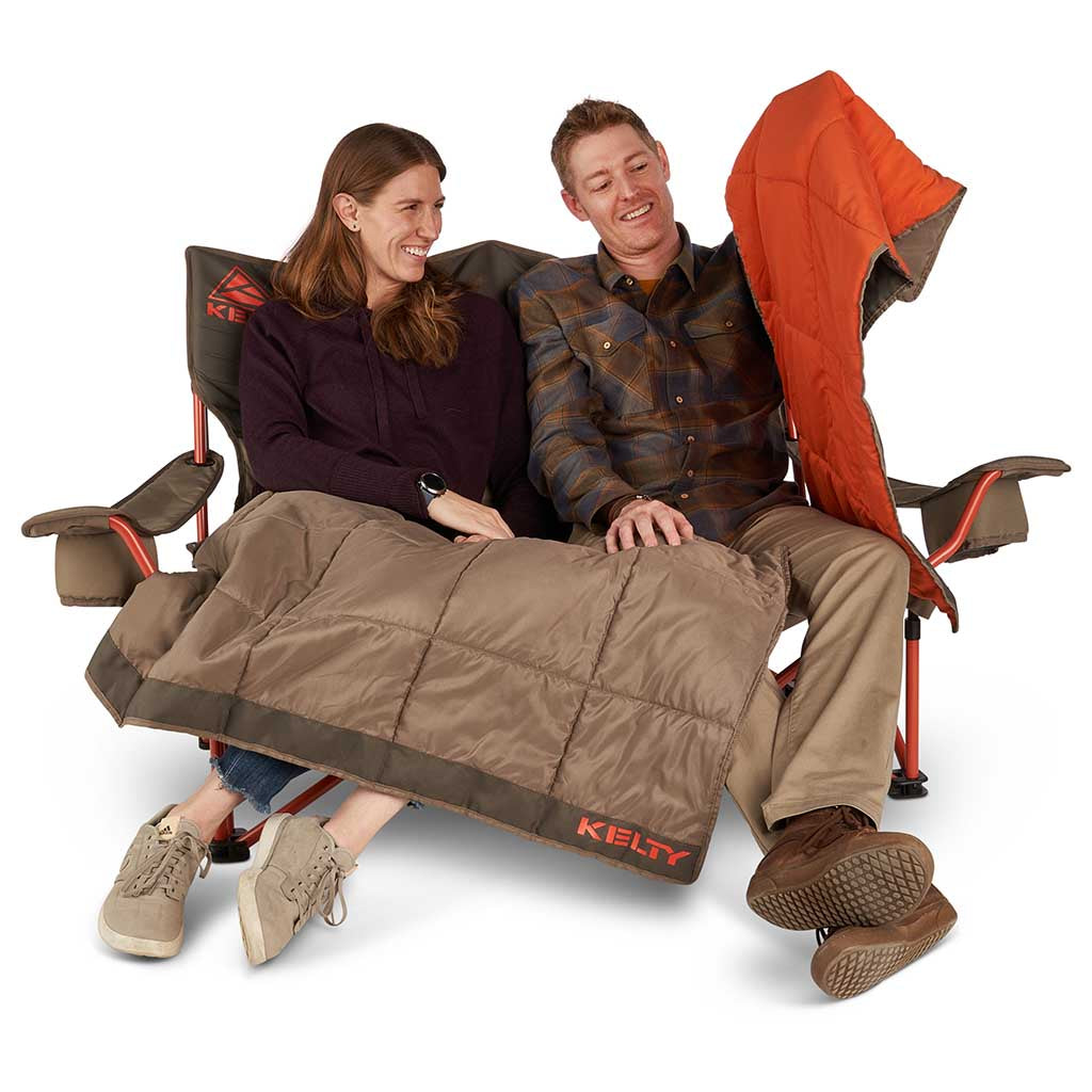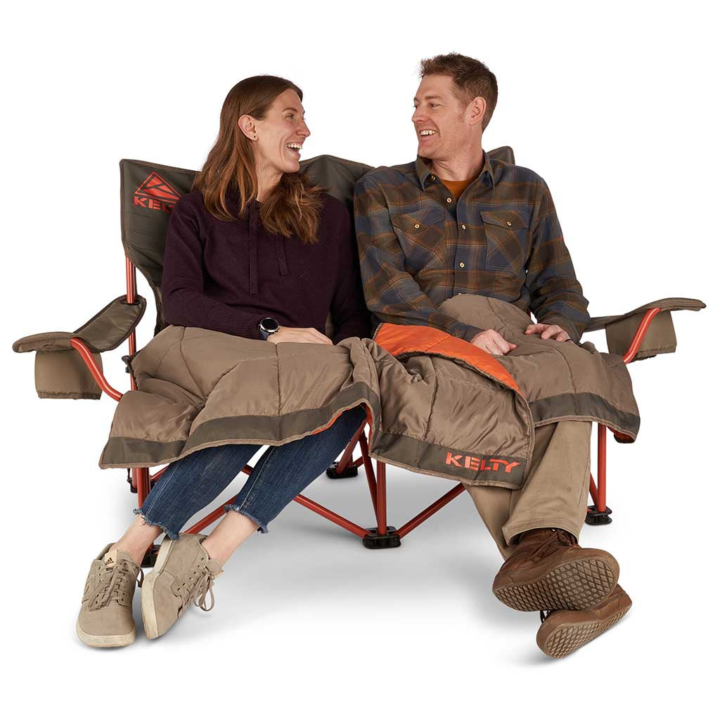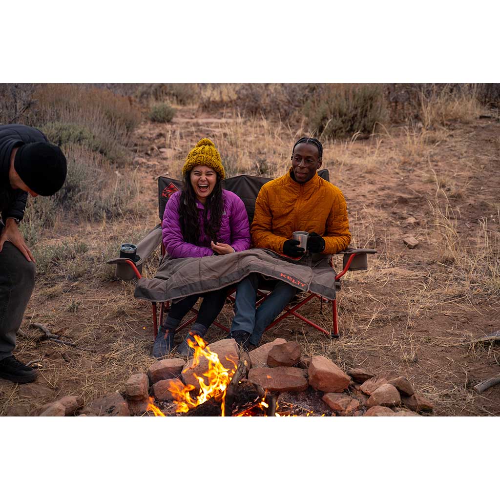 It’s no secret that the Low Loveseat from Kelty is one of our best selling camping chairs. It’s easy to carry, great quality and lets two people get comfy like they would on a sofa at home. The only thing that could make it cosier would be a nice blanket just in case the evening gets a bit chilly. Well, the designers at Kelty have decided that one blanket is not enough and have created the Low Loveseat Nest with two of them, so each person gets their own. The blankets are made from a soft touch fabric with an insulating fill to really help keep the chill off, and are detachable so you can wear them around camp when not sitting down. The seat itself has the same adjustable armrests and insulated drinks holders as the original version, so you get all the same features, just with an extra level of snugness.