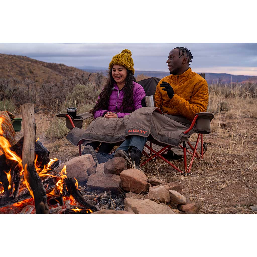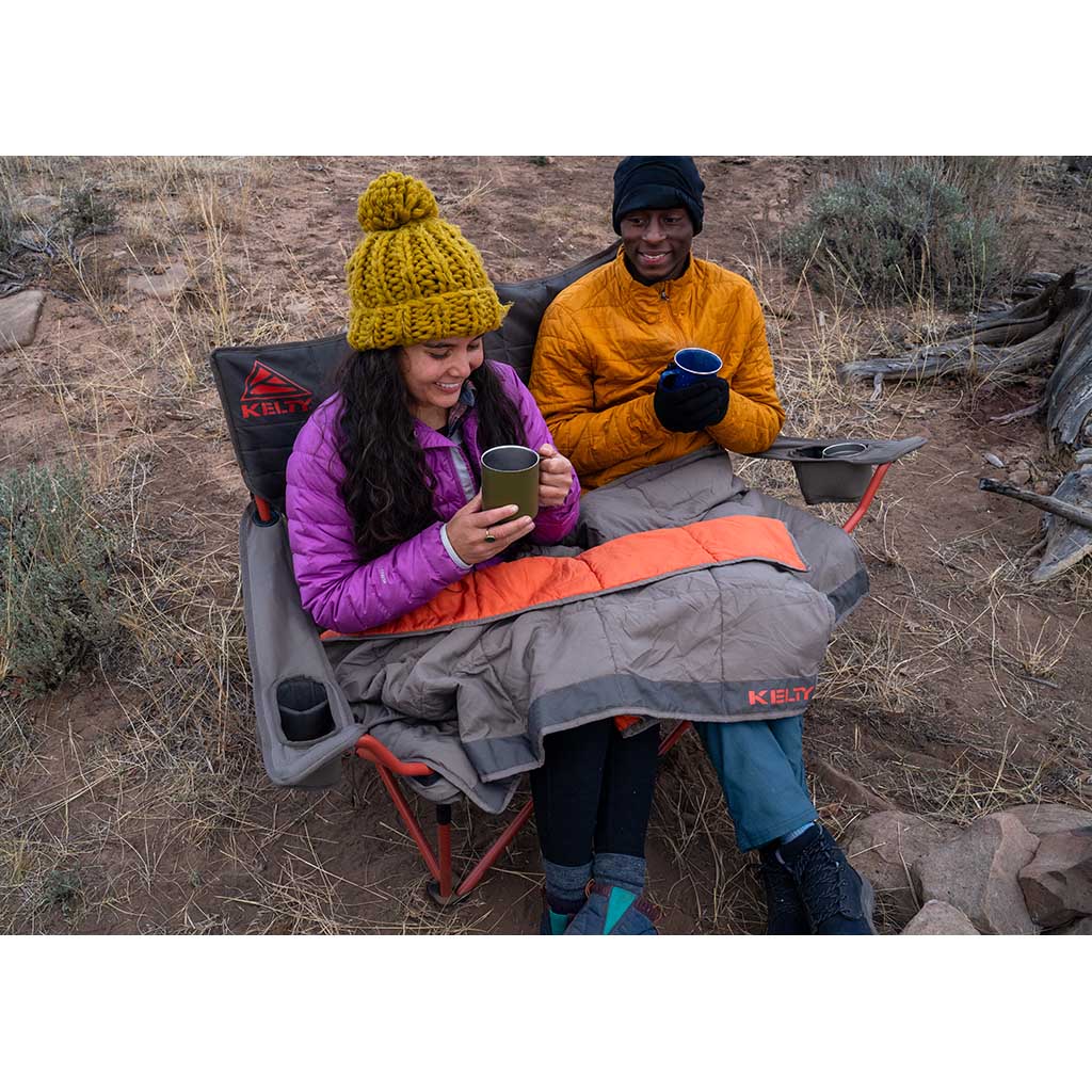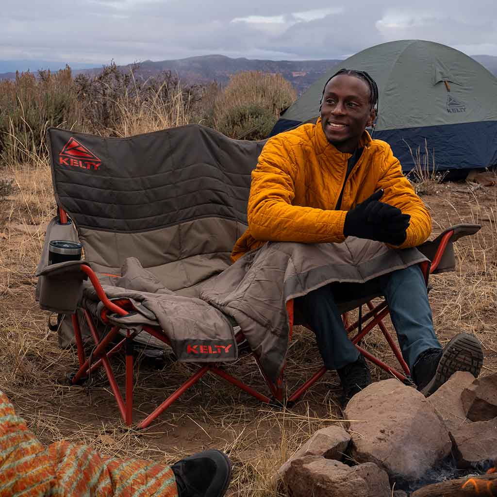 It’s no secret that the Low Loveseat from Kelty is one of our best selling camping chairs. It’s easy to carry, great quality and lets two people get comfy like they would on a sofa at home. The only thing that could make it cosier would be a nice blanket just in case the evening gets a bit chilly. Well, the designers at Kelty have decided that one blanket is not enough and have created the Low Loveseat Nest with two of them, so each person gets their own. The blankets are made from a soft touch fabric with an insulating fill to really help keep the chill off, and are detachable so you can wear them around camp when not sitting down. The seat itself has the same adjustable armrests and insulated drinks holders as the original version, so you get all the same features, just with an extra level of snugness.