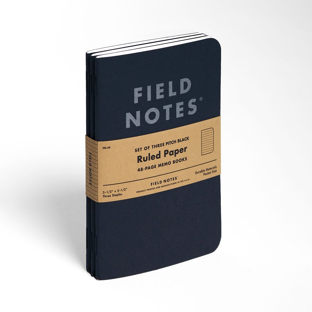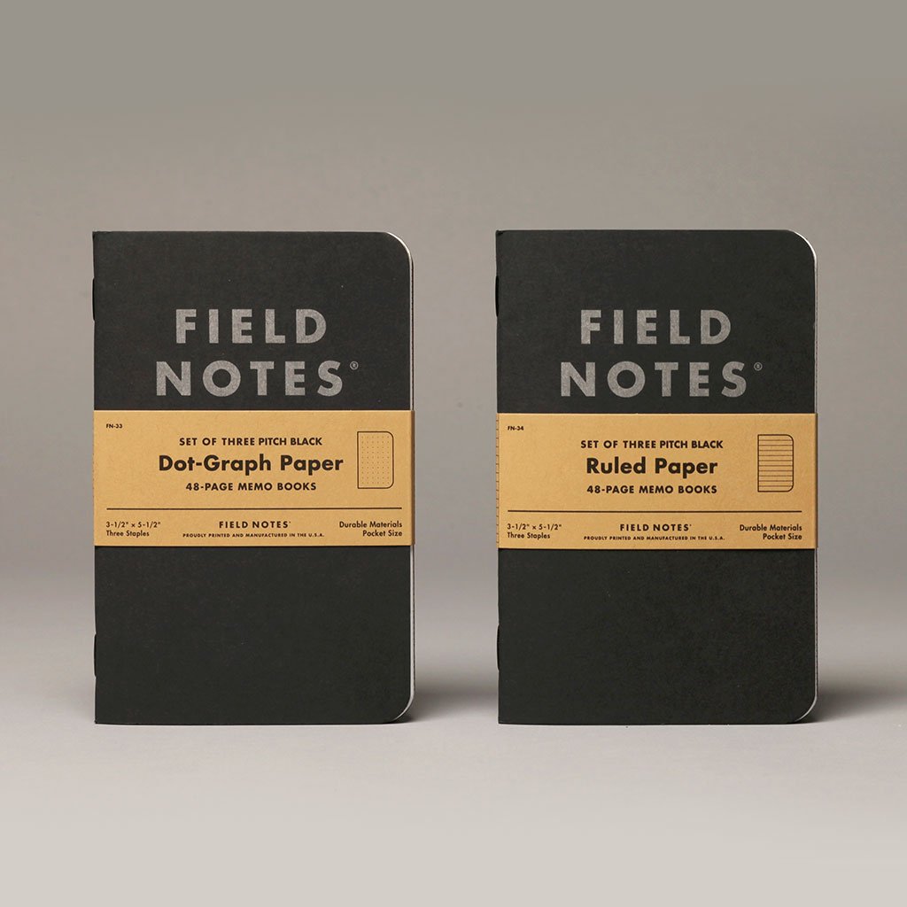 Whether you present your best ideas in the boardroom or the studio, Field Notes’ Pitch Black memo books are the perfect desktop companion for creatives and execs alike. With 48 pages in the classic 3½" × 5½" size to slip easily into a pocket, they come in both standard ruled and dot-graph print paper. Both versions have 48 pages, saddle stitched with glossy black staples and finished with sturdy custom duplex black/brown covers, plus a Pitch Black logo discreetly printed on the back.