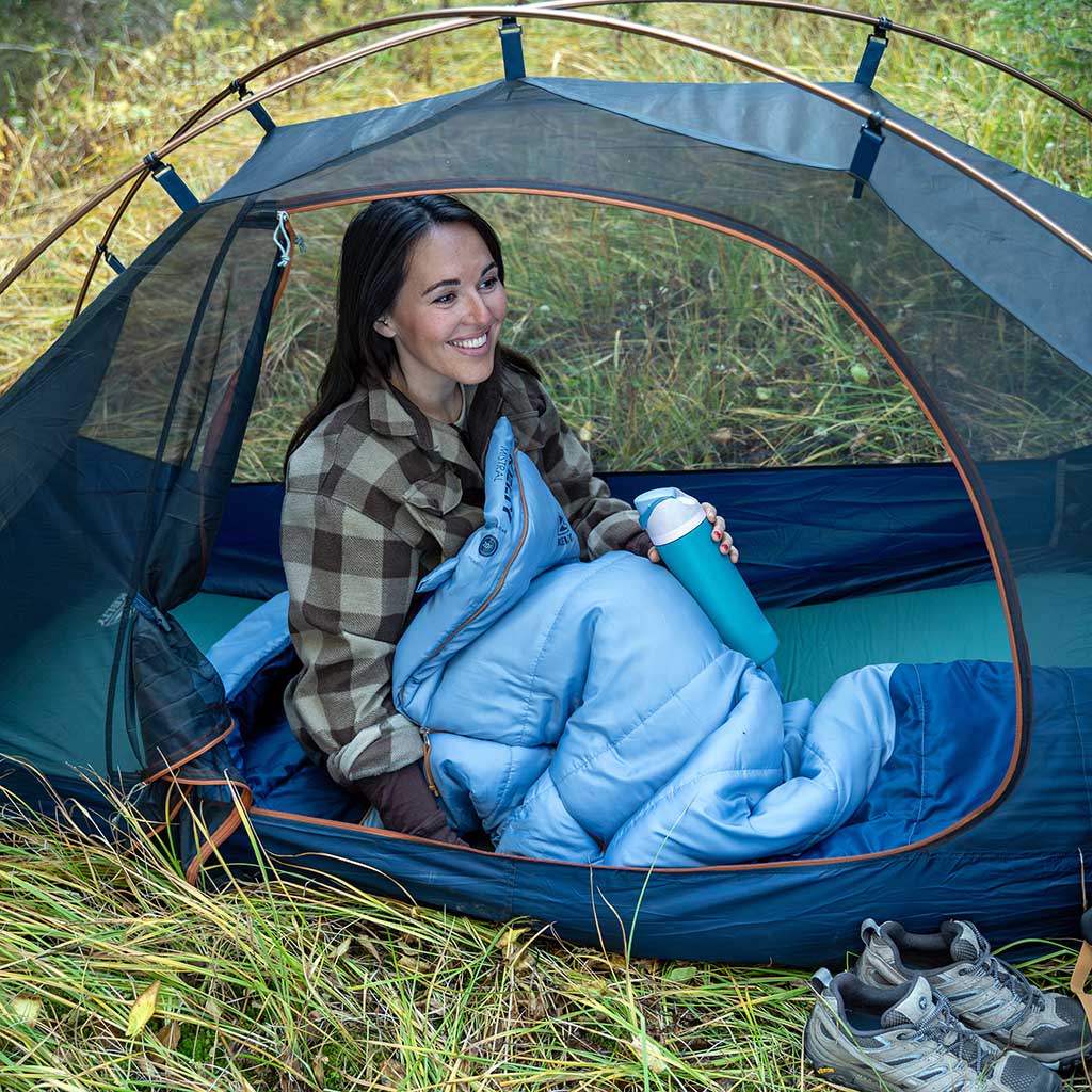 This classic mummy bag is focused on functionality, without adding unnecessary features that send the price tag sky-rocketing upwards. The Mistral utilises cosy CloudLoft synthetic insulation to provide reliable warmth from early spring to late autumn, with an extreme temperature rating of -7°C, and draught-locked zippers that ward off chills. Its offset quilt construction means you won’t be left with uncomfortable cold spots either. Lastly, a roomy footbox gives you plenty of space to wriggle your toes.