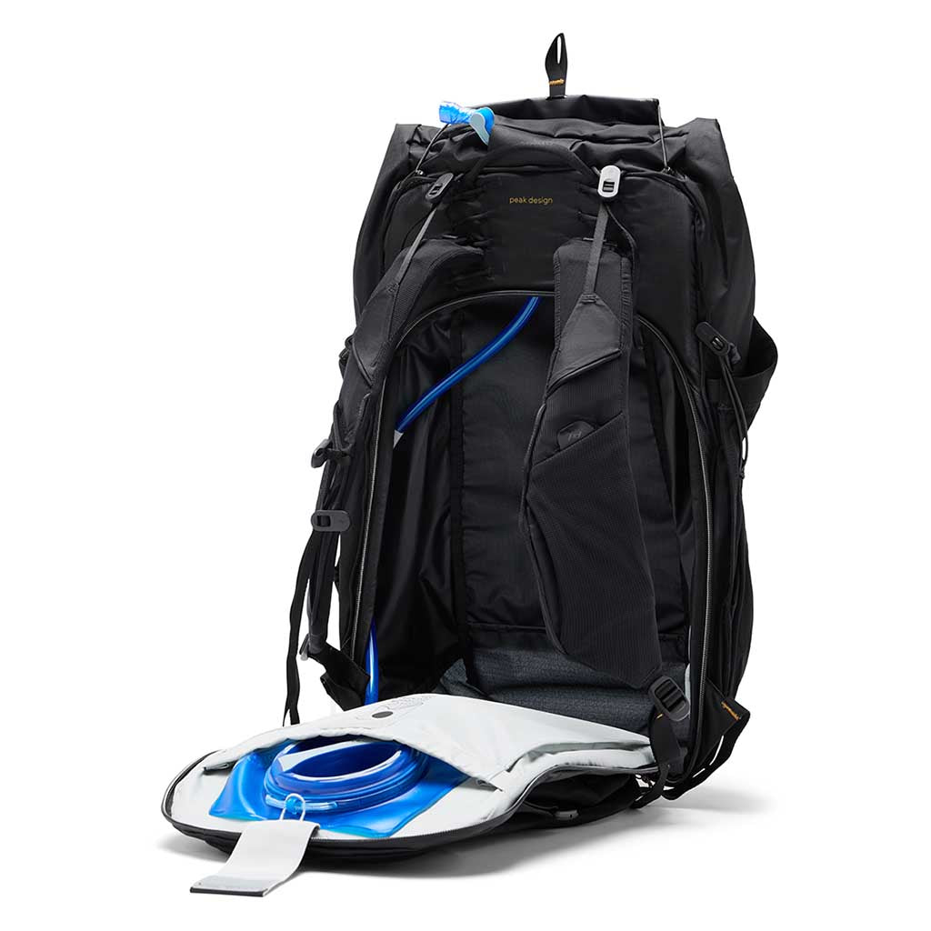 Hydration/Laptop Carry • 1× internal hydration sleeve• 1× external hydration sleeve (center Flex Pocket™)• Internal sleeve fits up to 16″ MacBook Pro