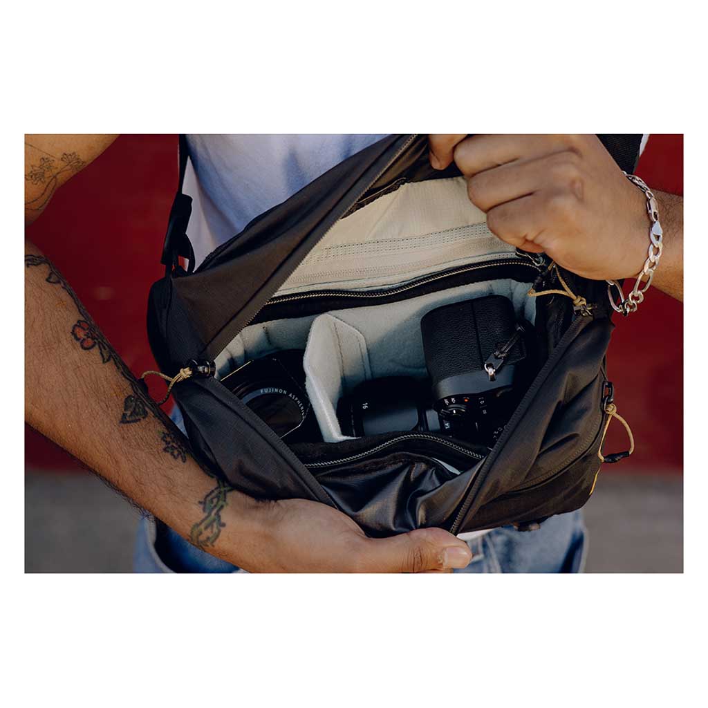 This is the sling that keeps up with life in motion. Whether you’re summiting a local peak, exploring city backstreets, or cycling out to the coast, the Peak Design Outdoor Sling offers rugged weatherproof versatility in a minimalist, easy-to-carry design. Available in 2L, 4L, or 7L capacities, it’s built for those who travel light but carry gear that works hard. With a fast-adjusting strap and intuitive access layout, it’s perfect for on-the-fly photographers, hikers needing quick access to snacks and essentials, or commuters wanting something compact but capable. You can wear it crossbody, sling it over your shoulder, strap it to your backpack, or even wear it around your waist like a bumbag — it’s a versatile bit of kit that adapts to every kind of mission. And being crafted from 100% recycled weatherproof nylon, it’s built with the same ultra-durable ethos that’s made Peak Design a favourite among pro adventurers and creatives alike.