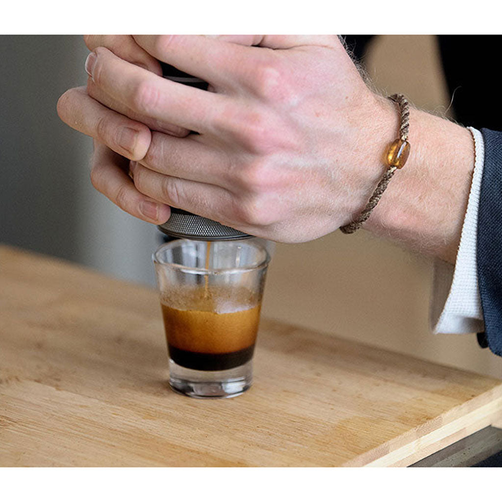 Fits in the palm of your hand but delivers a powerful espresso shot